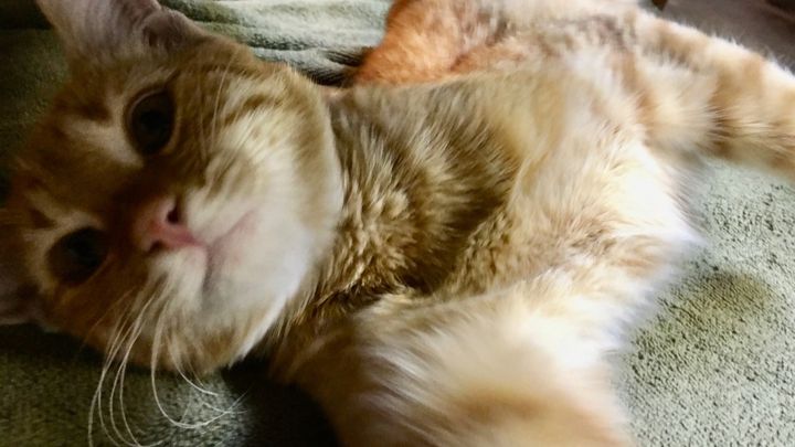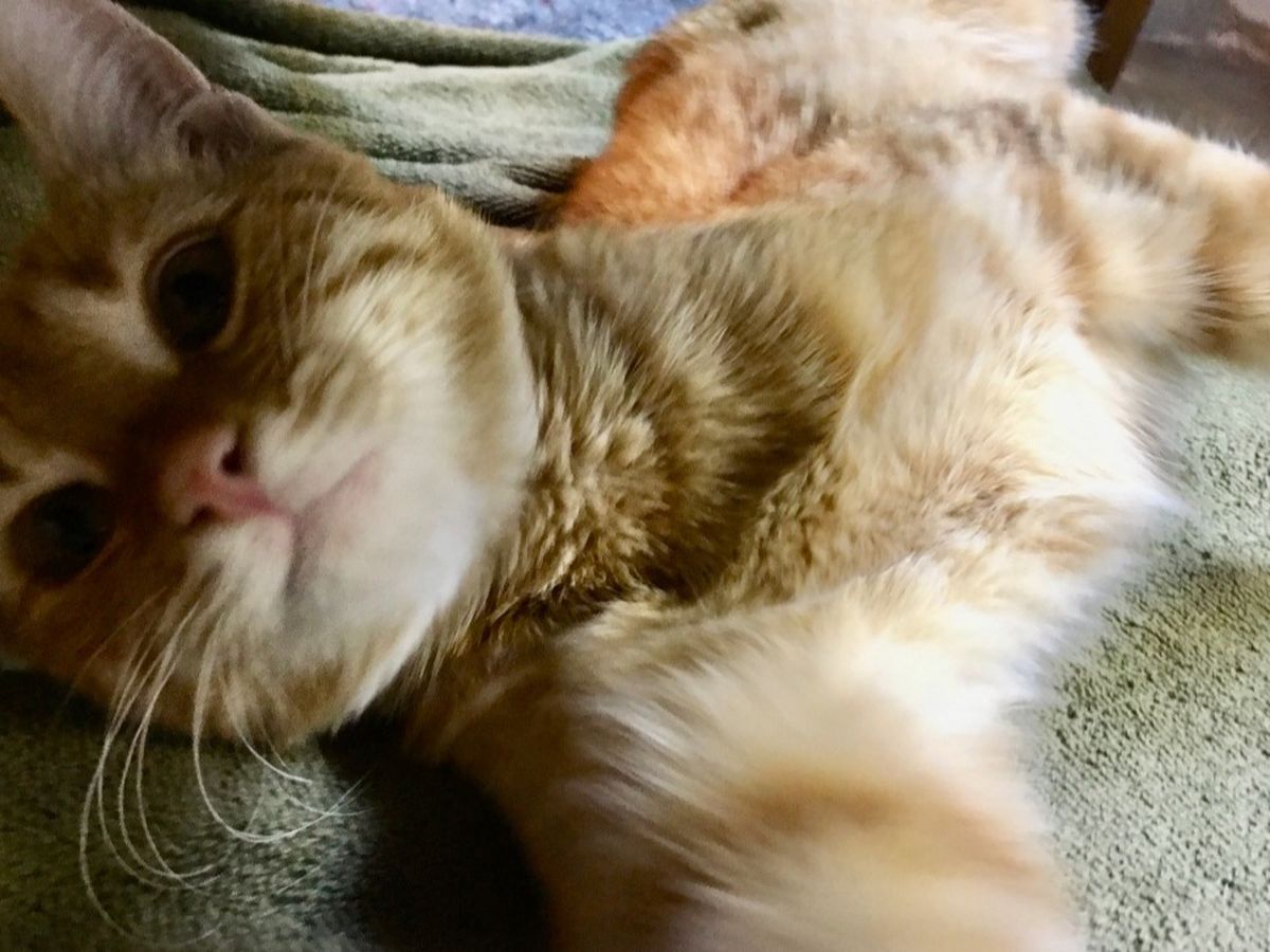 The choices for Hops are amputating the leg or paying for surgery. Jenny and I have already paid $300 for fees, and we need to come up with another $1750 for the surgery. We think this orange baby deserves a life with all four legs. Because I have asthma and allergies (and one of our dogs is also “allergic”), we need to find a forever home for Hops. He’s currently living in the lap of luxury in our garage, and while he’s happy there for the time being, he’s gonna be amazed at what the inside of a home is like. Seriously, wait until you meet him. Even though the beginning of his life has been hard, he’s not mad about it — he’s the happiest guy ever.