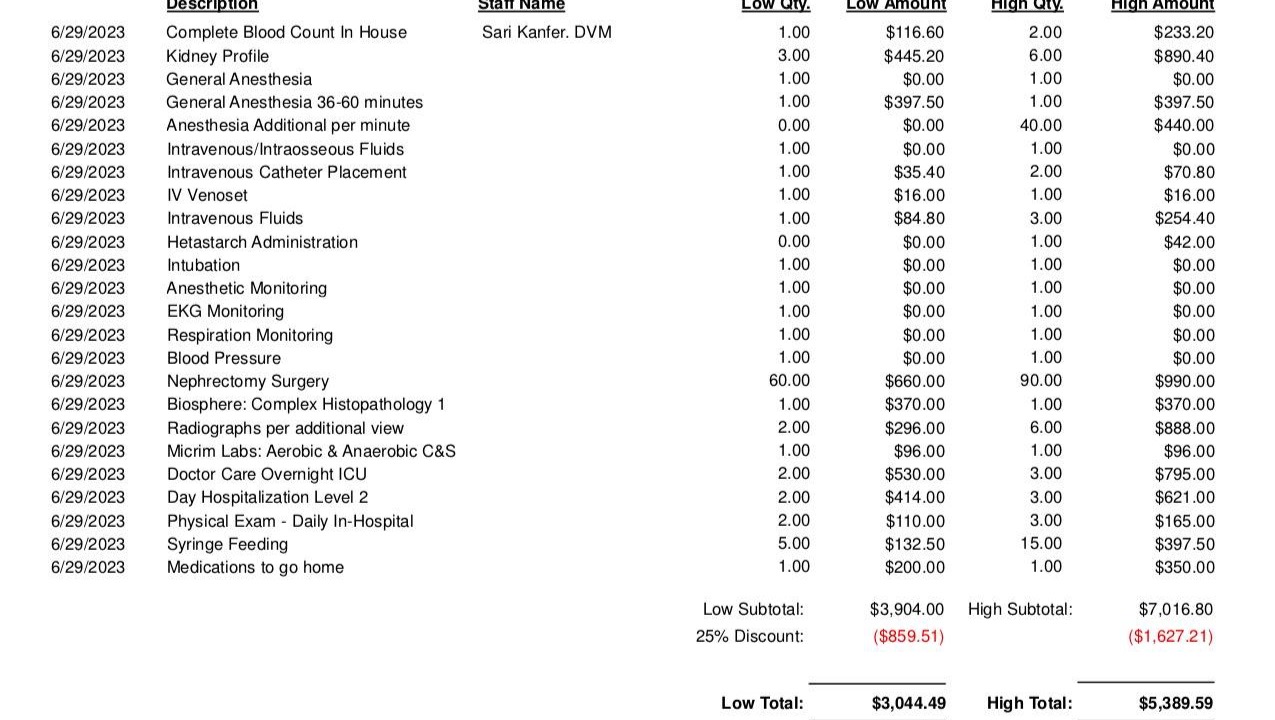 ESTIMATE FOR MY SURGERY (full photo available upon request)