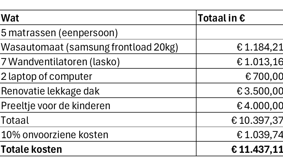Met deze actie willen we specifieke materialen inzamelen en bijdragen aan noodzakelijke werkzaamheden om de leef- en leeromgeving van de kinderen te verbeteren.