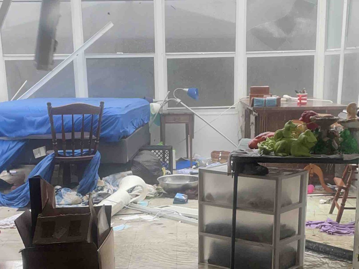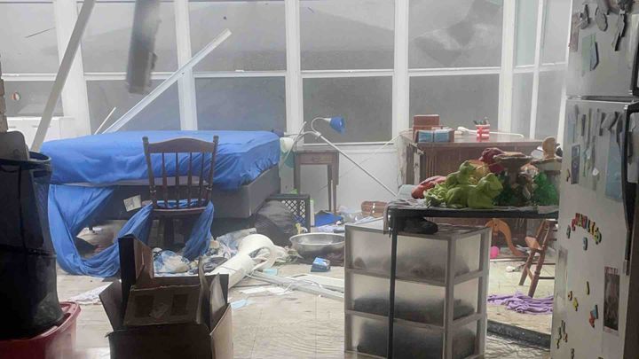 Crazy fast winds pulled the roof off the back room so everything in my grandma’s house flooded, allowing water into the front of the house. Walls collapsed in the back trapping a lot of items out of reach.