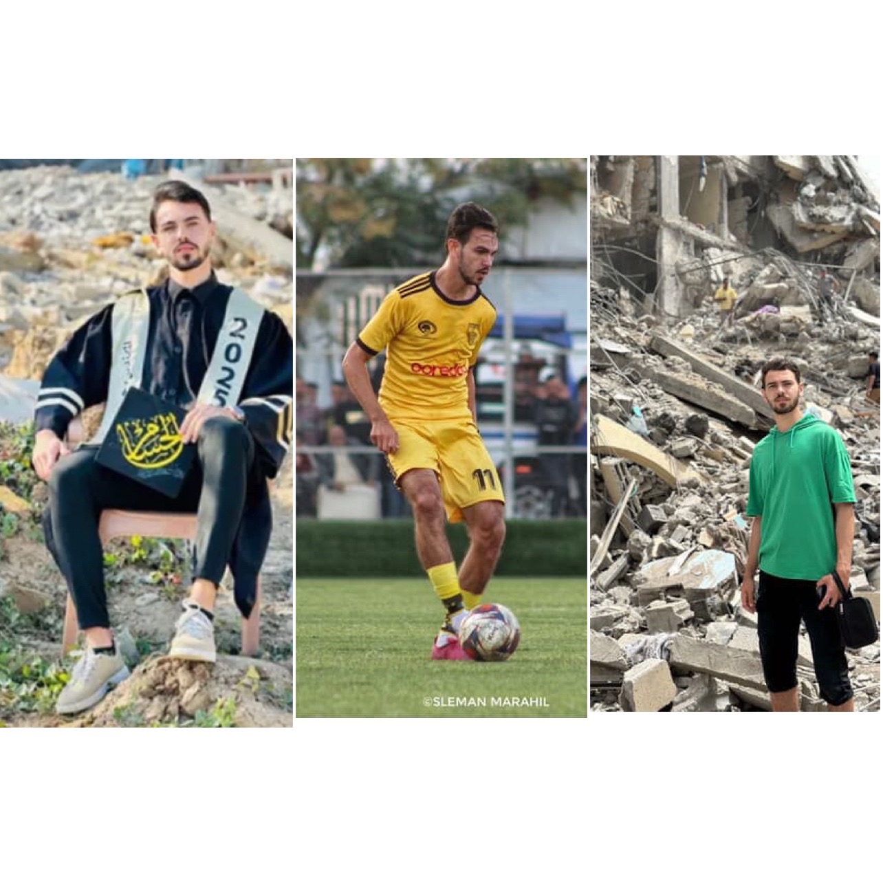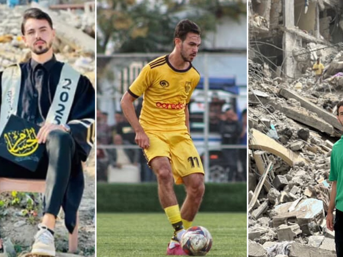Je suis diplômé en ingénierie informatique et je suis aussi joueur de football. Le football n’était pas seulement ma passion, c’était aussi mon moyen de gagner ma vie et de soutenir ma famille. Je m’entraînais, je participais à des compétitions, et j’espérais un jour jouer professionnellement à l’extérieur de Gaza pour représenter mon peuple. Mais la guerre a brisé ce rêve. Les opportunités ont disparu. Les moyens de subsistance se sont effondrés.