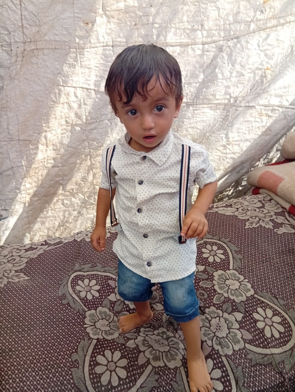 His wife is breastfeeding, but they cannot provide enough milk and proper nutrition for little Nabil. Every day is a struggle just to feed the children and keep them safe.