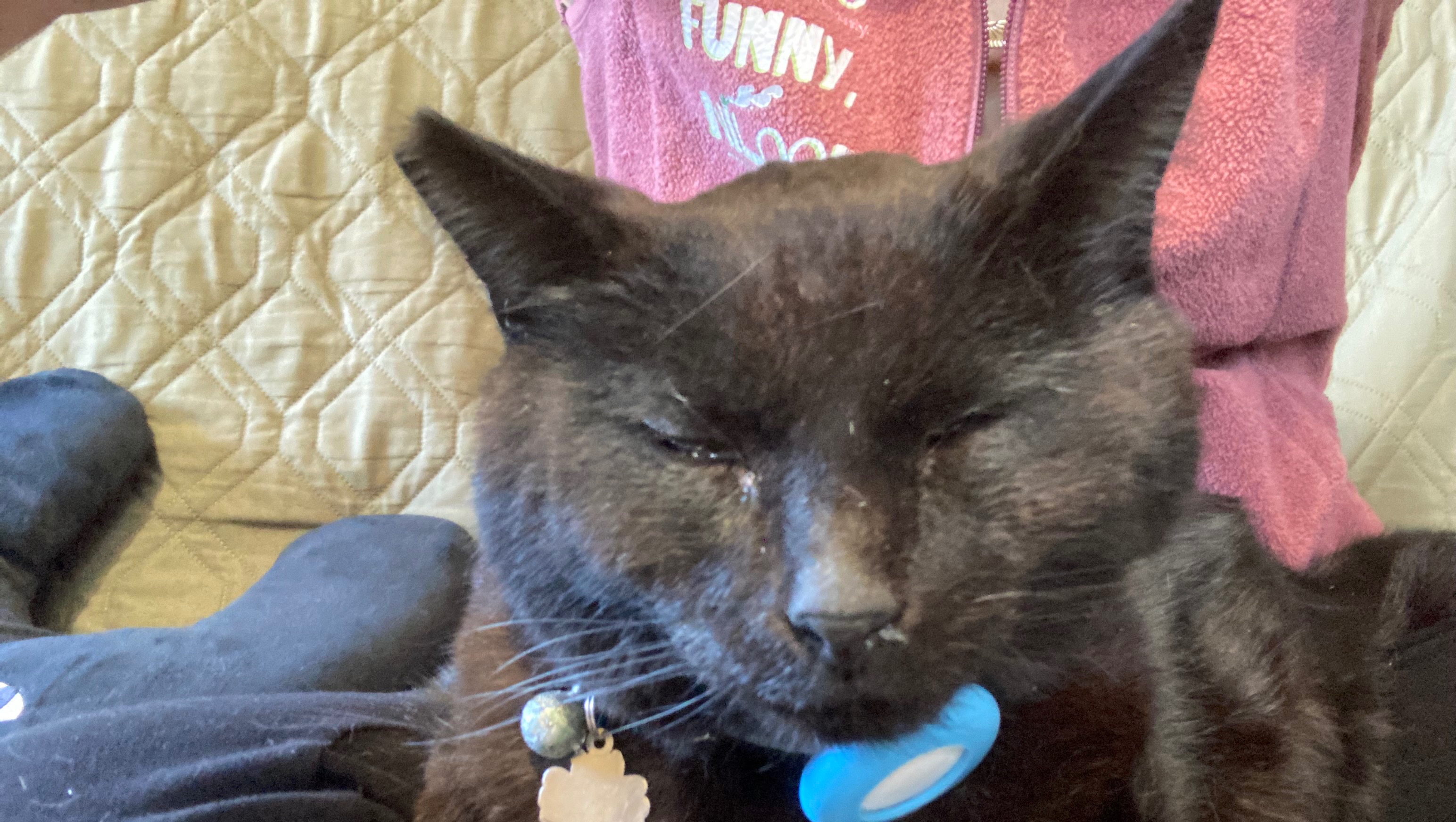 In March Ian came to eat at dinner time with a very bloody right eye. He didn't seem to have any outside injuries. I immediately began giving him antibiotic eye ointment. Made an appointment for him to see if he had been hit by a car or had any internal injuries. None were detected.