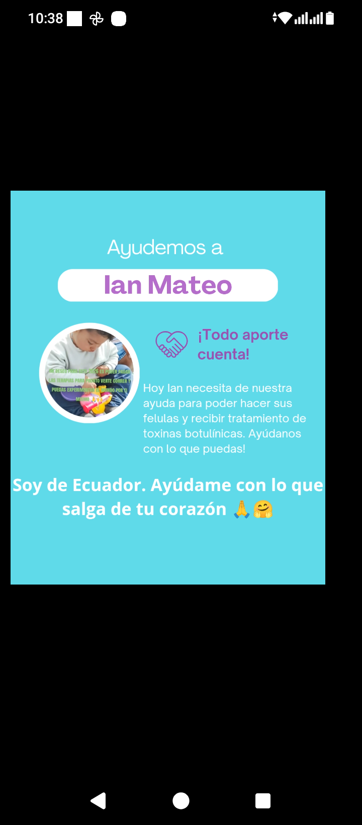 Hello, my name is Ian, a 2-year-old boy diagnosed with hydrocephalus, cerebral palsy, and seizures. I can't walk or move my legs. I need therapy, monthly checkups, and medication for the seizures. I'm trying to raise money for my therapy and prosthetics so I can walk. Thank you very much.