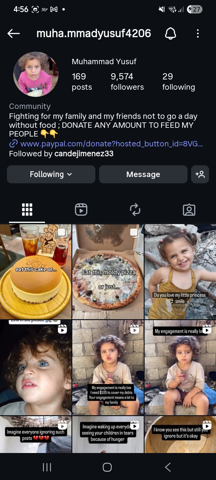 Hello! My name is Jada, and I'm here in the US to help my friend thats in Gaza. He is named Muhammad Yusuf, and has 2 children. His situation is rough, and people wanted to donate. But he couldn't fund himself so he asked me for help. I can only see through his videos and others that they need extreme help. Everyone has their own needs, and it is very brave & vulnerable of him to ask for my help and yours. These funds will go directly to him so he can buy food and aids. Donate what you can, and please be responsive on his Instagram.