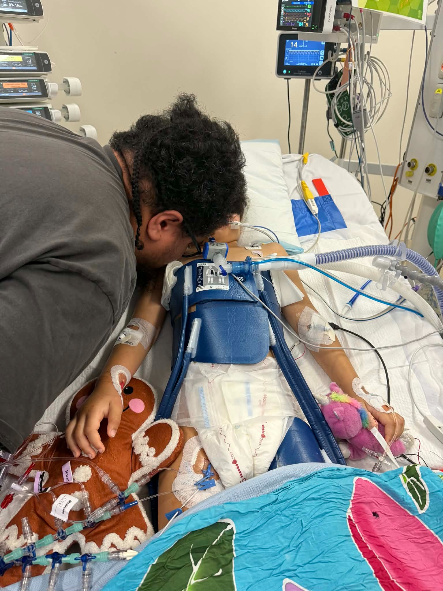 Miah and I are getting rest they have given us a room with Ronald McDonald house the angel nurses watching her every second of every day keep telling us everything that some things aren’t sinking in and some are.