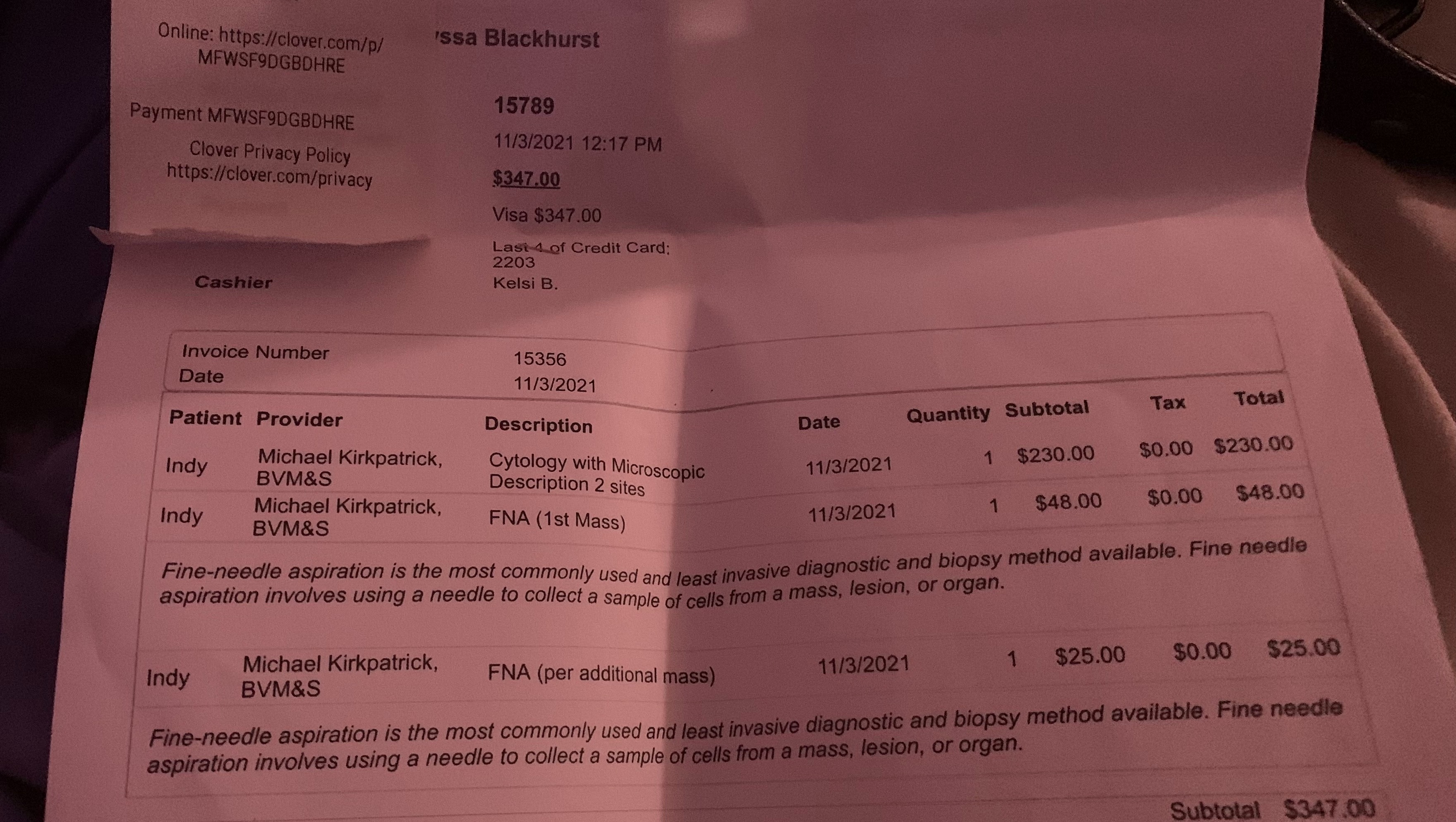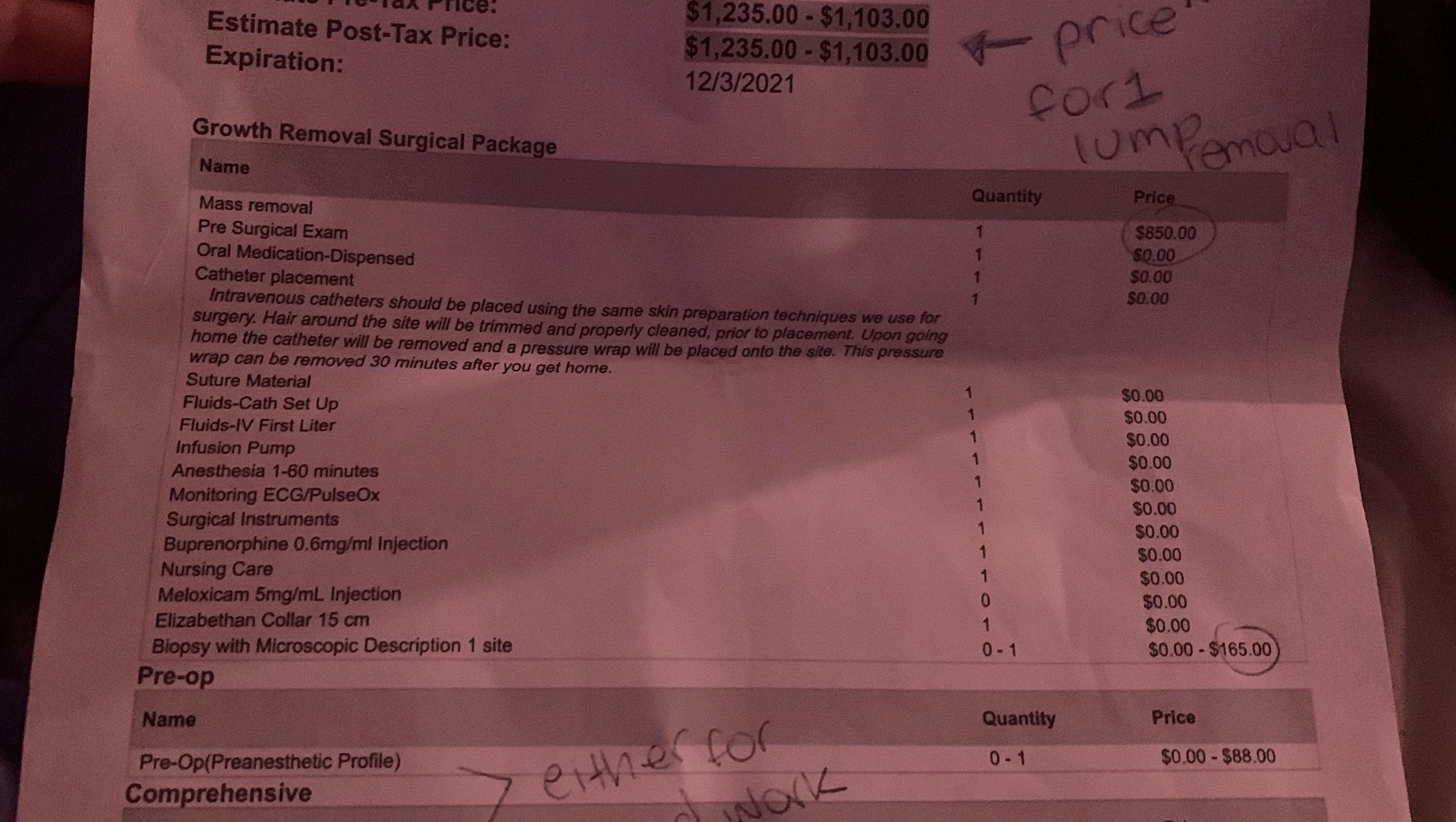 I’ve already paid for her biopsy which cost about $400, but surgery will be $1200 per lump removal. In addition, my vet recommended I do chest X-rays to confirm the cancer hasn’t spread (I have yet to receive an estimate on the price of this, but will find out tomorrow).