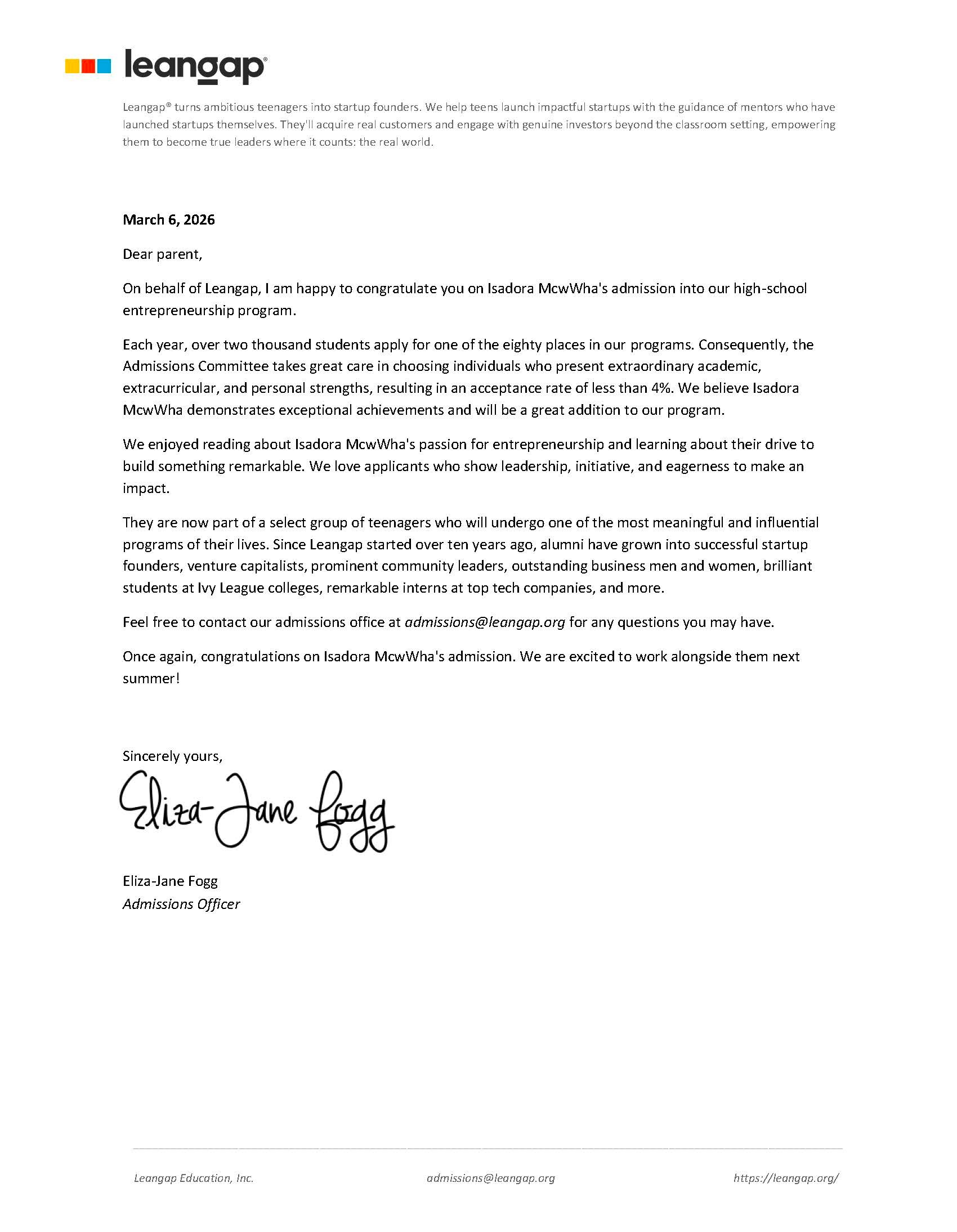 Hi! My name is Isa. I’m 16 years old , and a few days ago I was accepted into Leangap, an intensive entrepreneurship program hosted at the University of California, Berkeley.