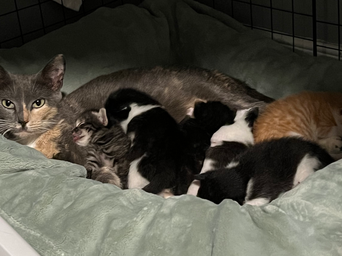 We received two stray momma cats with their kittens within the past couple of weeks. They both came from living outdoors and because of the extreme heat in Texas they needed to be cared for indoors. Both mommas, Isla (gray and orange) and Catalina (calico) are in separate, spacious cages with beds and blankets that get changed out everyday, they both have food and water and scratchers available to them. We need help raising donations for vet costs. Isla is doing great, all of her 6 babies appear healthy, but they will go to the vet and Isla will get examined and vaccinated when recommended. Catalina appears to have something wrong, she breathes heavily and pants sometimes, but she eats and drinks normally. Unfortunately she has already lost one of her kittens due to fading kitten syndrome, even after attempts to keep her alive. We are distraught but have to focus on the remaining 4 kittens from her litter and getting Cata to a vet to get examined and vaccinated when recommended. Donations will go to vet costs, food and litter. Daily updates will be on our instagram and TikTok. Thank you to everyone who has come to this page to support our efforts in getting these mommas healthy and eventually spayed and their kittens adopted in the future.