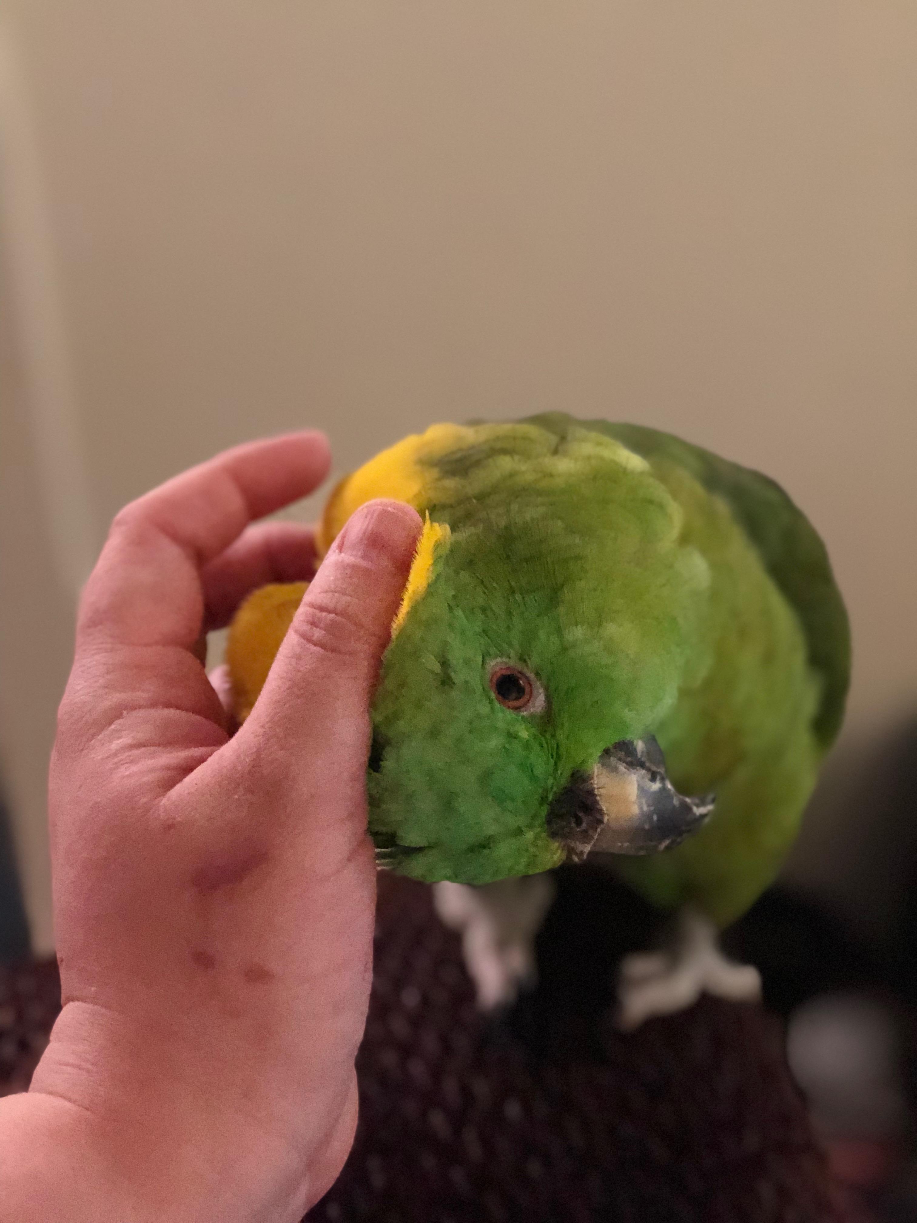 My name is Bobbie, and this is my 24-year-old Yellow Nape Amazon, Jade. I’m reaching out today with a heavy heart and an urgent request for help. Jade needed emergency surgery to remove a broken, adhered egg from her reproductive tract. The yolk had burst and was gluing her intestines together; she also had a small hernia from straining to remove the egg on her own.