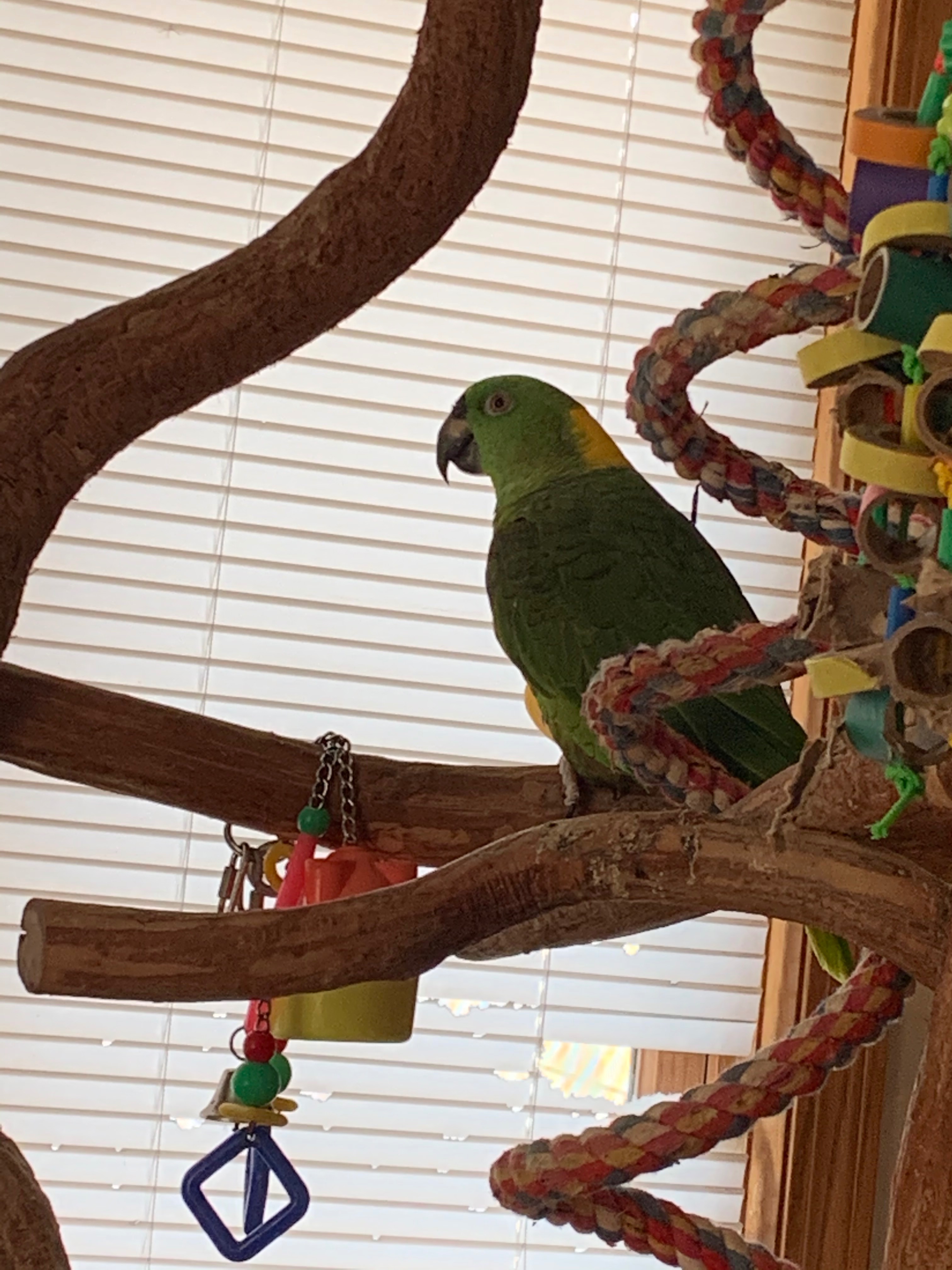 Jade has been by my side since she was just 12 weeks old, and in those 24 years, she is more than just a pet to me—she’s my best friend, soulmate, and family member. We've raised my child together, fostered other parrots and other animals, and along the way, Jade’s exceptional verbal skills and vibrant personality have amazed and educated everyone she meets. She truly is one of a kind. The vets had nothing but positive things to say about her!