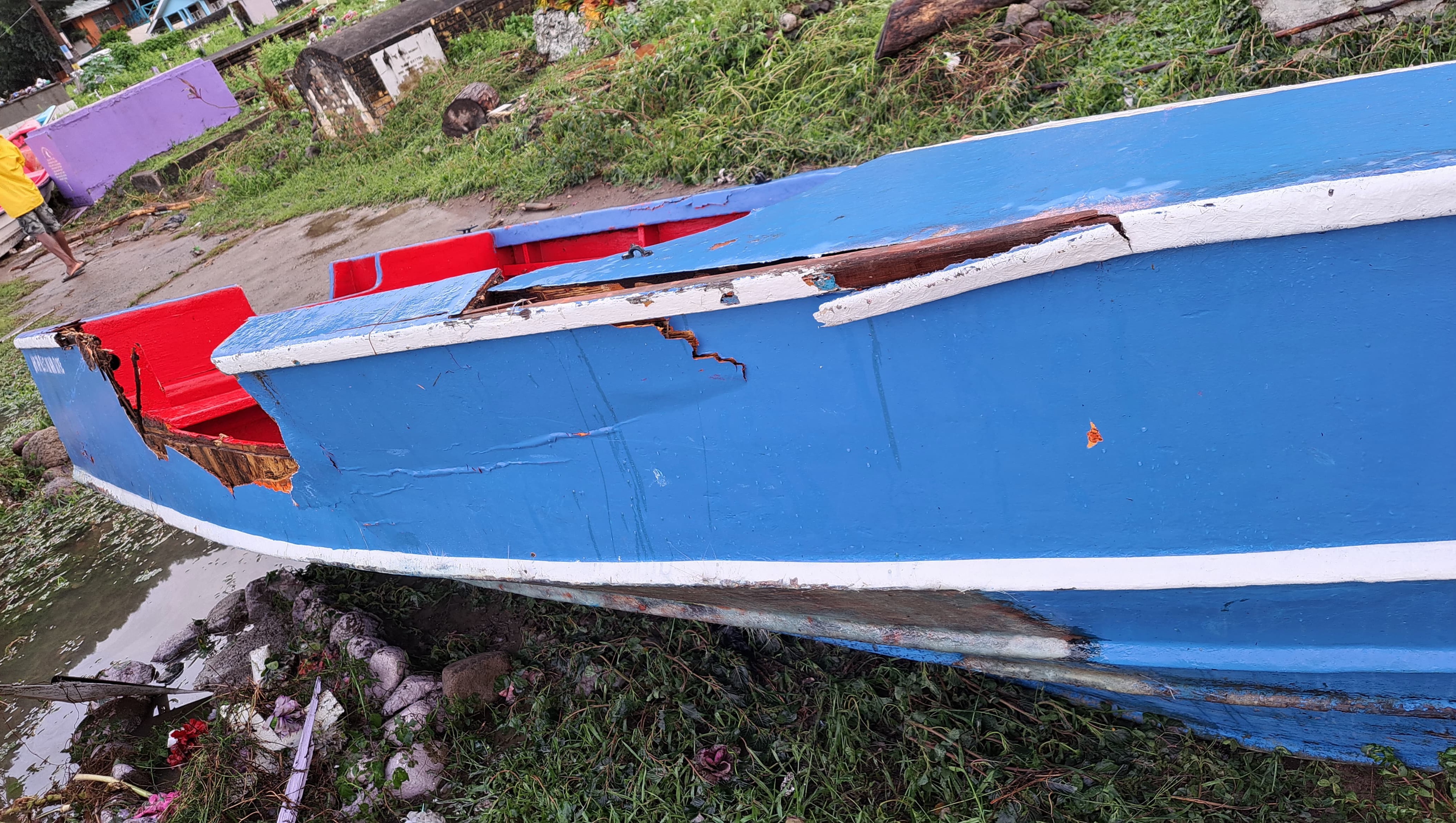 Unfortunately, the storm surge of Hurricane Beryl impacted the waterfront of Soufriere St Lucia, damaging many boats and businesses, including Jahleel’s small boat named “Give Thanks”.