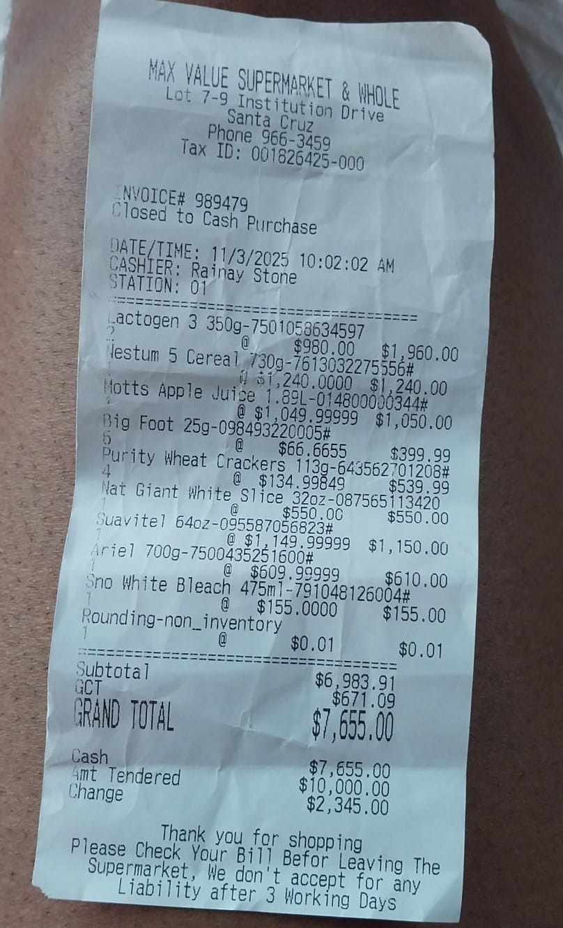 ⚠️£100 = Basic food shop (baby milk formula, Nappies, tinned fish, corned beef, rice, flour, cornmeal, dried milk, oil, toilet paper).