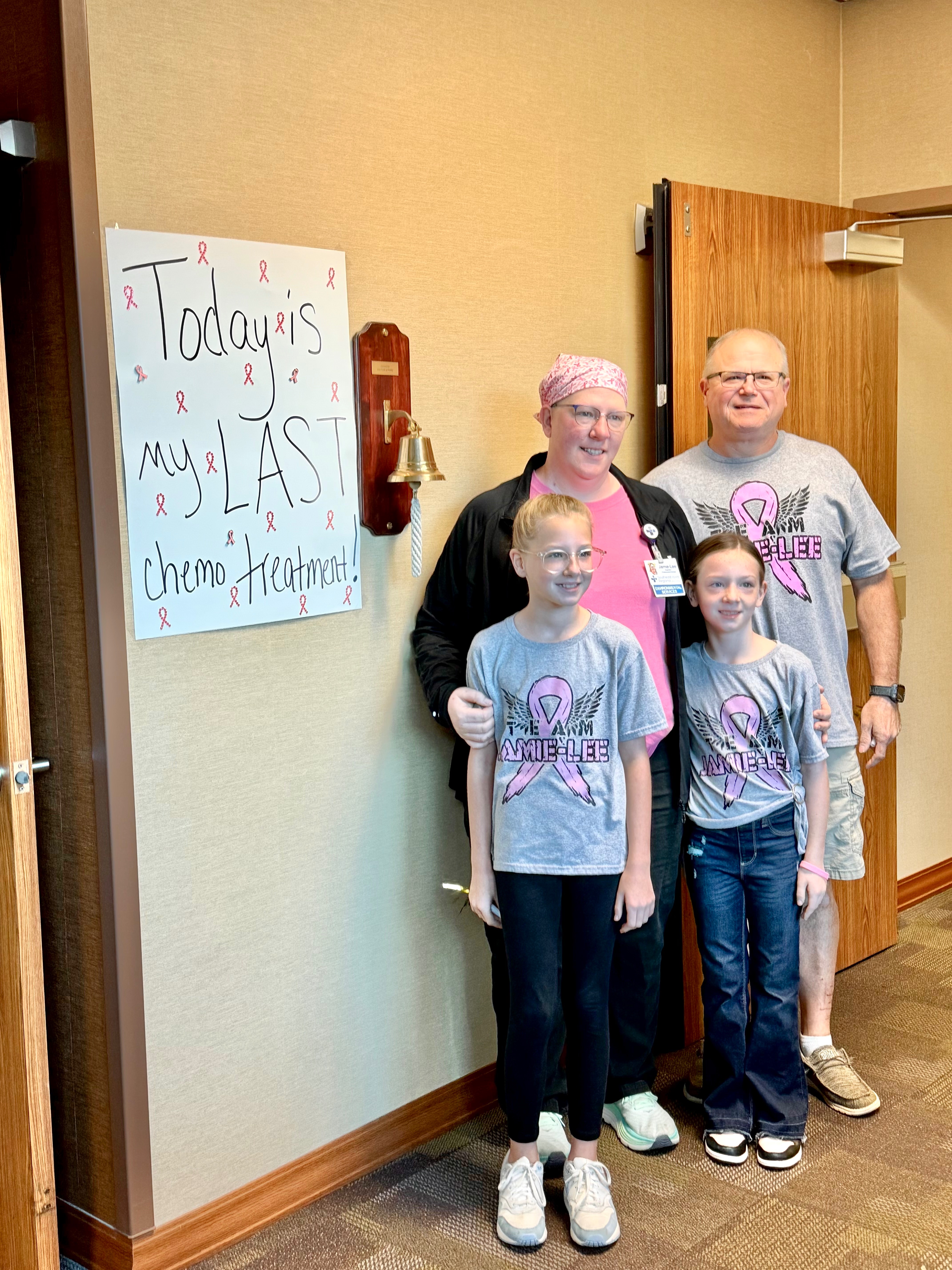 Exactly two months later, on May 21st— she started her 4 hour long chemotherapy journey. This is very strenuous, not just for her— but also her two young girls and her husband. Jamie is so passionate about instilling strength in her girls that later the same night of her first chemo treatment, she went to her daughter’s softball/tball games. If that doesn’t show strength I don’t know what does!