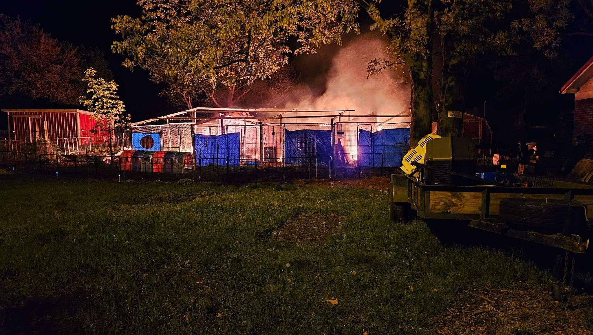 “At 4:45am we were awoken by knocking on our door... Dog City was engulfed in flames, all we could see was the glowing red where the roof once was. 911 was immediately called but unfortunately by the time the fire department arrived on scene the building was already gone. All the fire department could do at this point was stop the fire from spreading to our home.