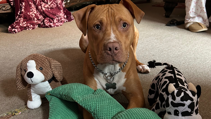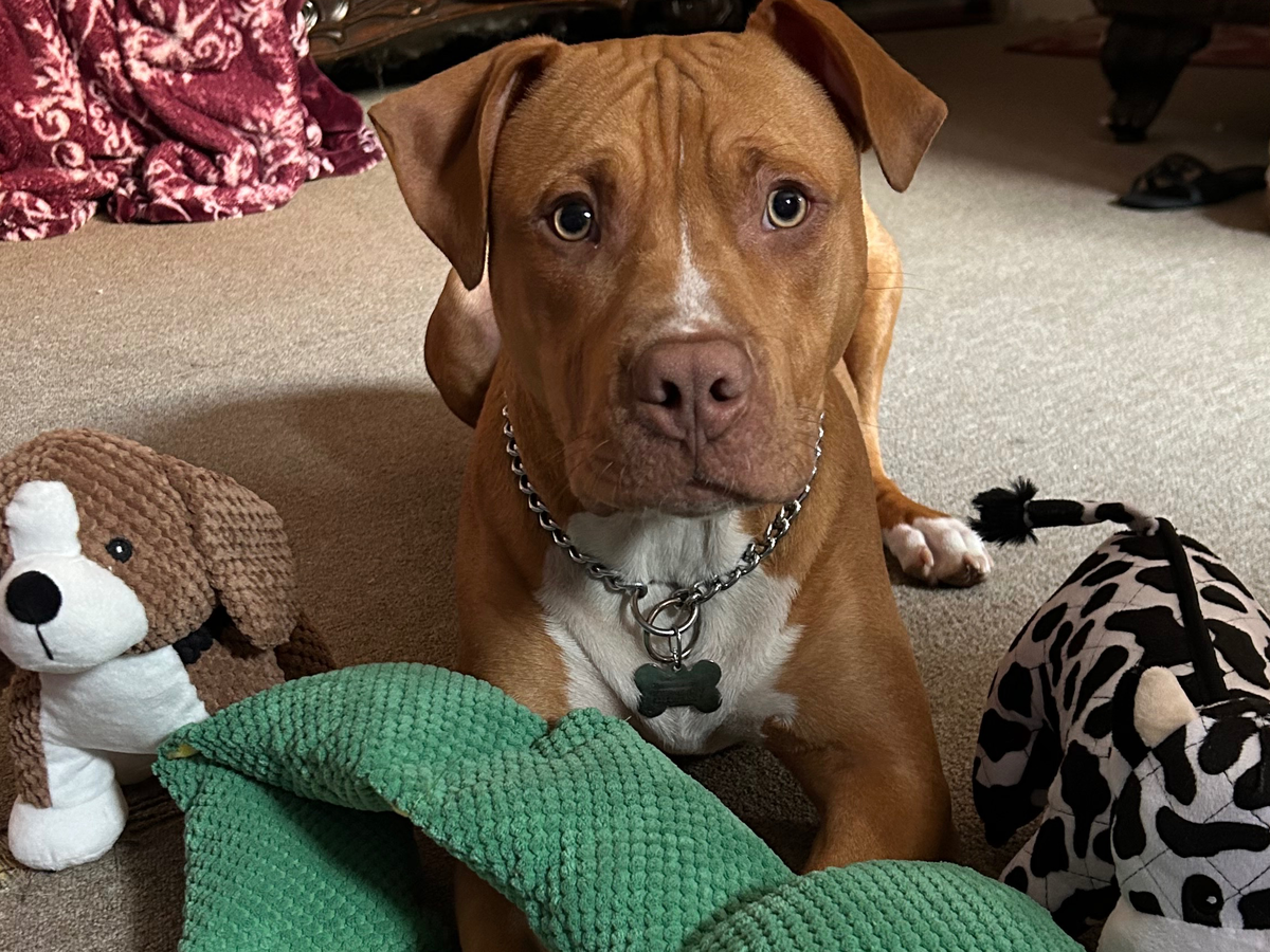 Jax is our 8-month-old pitbull who came into our lives during a rough time. Since joining our family, he has become our light in so many ways. Jax is always happy, loves meeting new people, and brings so much joy to everyone around him. We just want him to live his life to the fullest and continue spreading happiness wherever he goes.