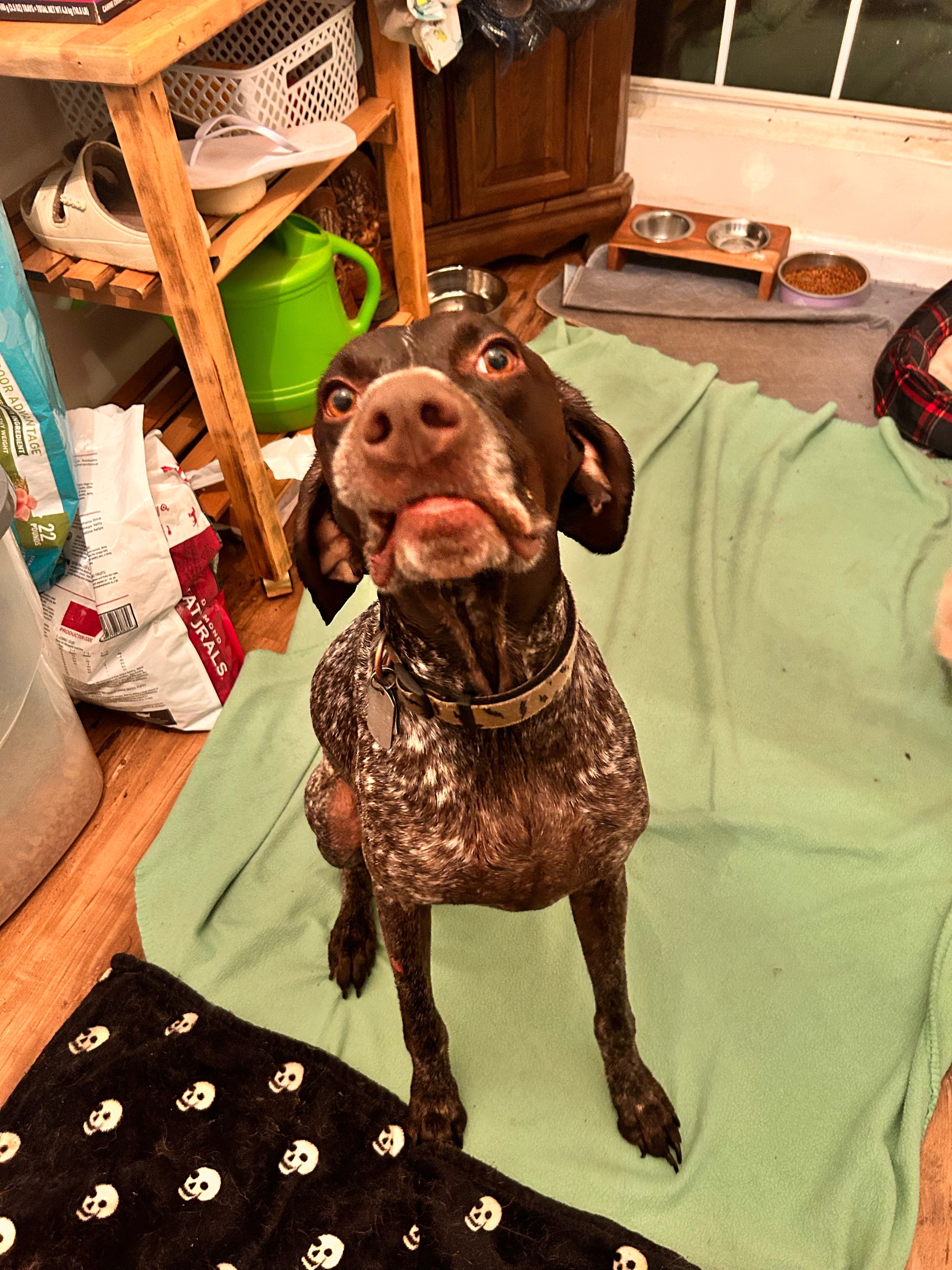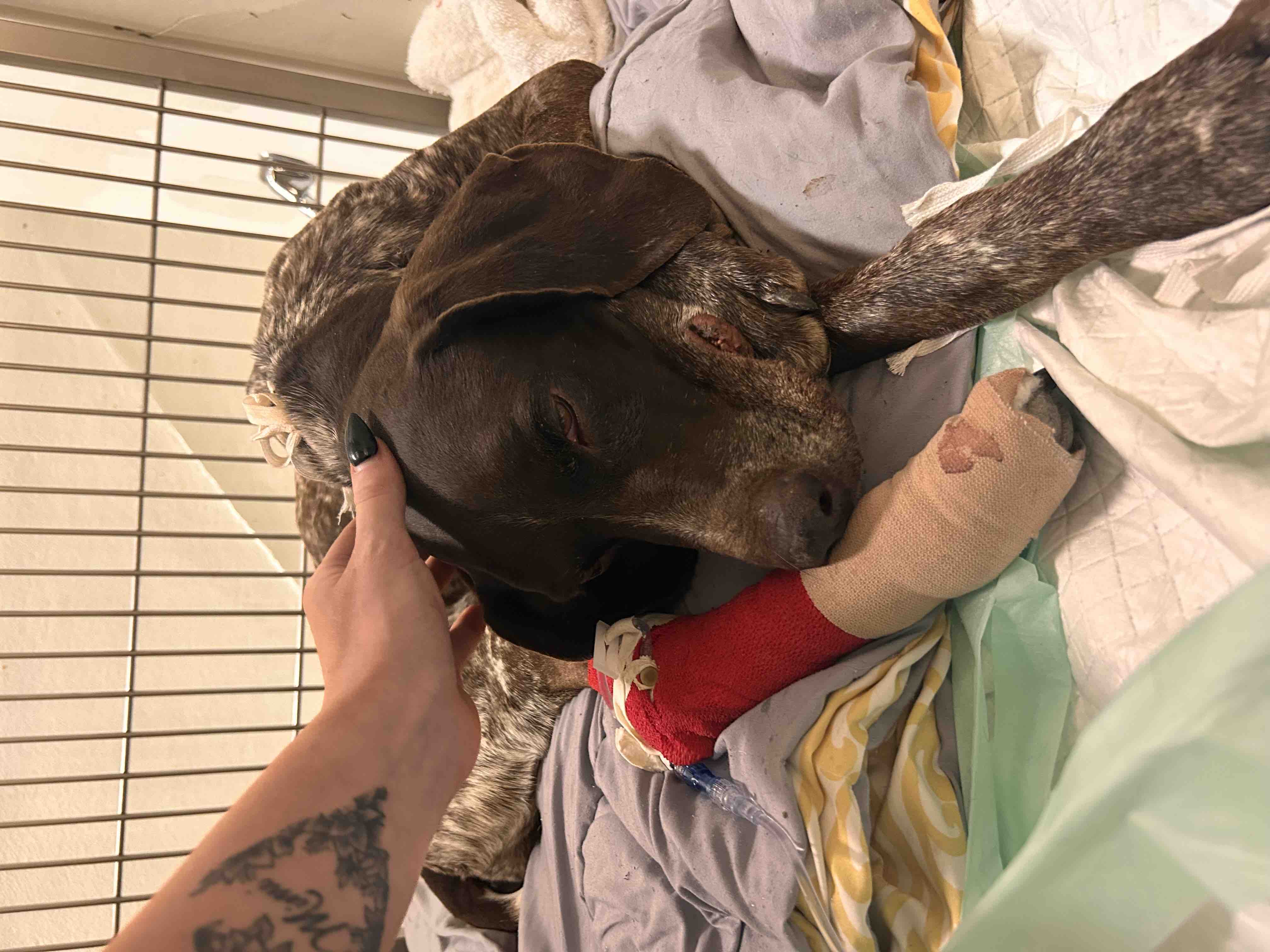 Last night, 4/11, I had come home to find our 6 year old GSP Jax had been shot in the throat. Originally upon seeing him & his wounds we believed he has been attacked by a wild animal but after rushing him to an ER vet X-rays confirmed that he had been shot.