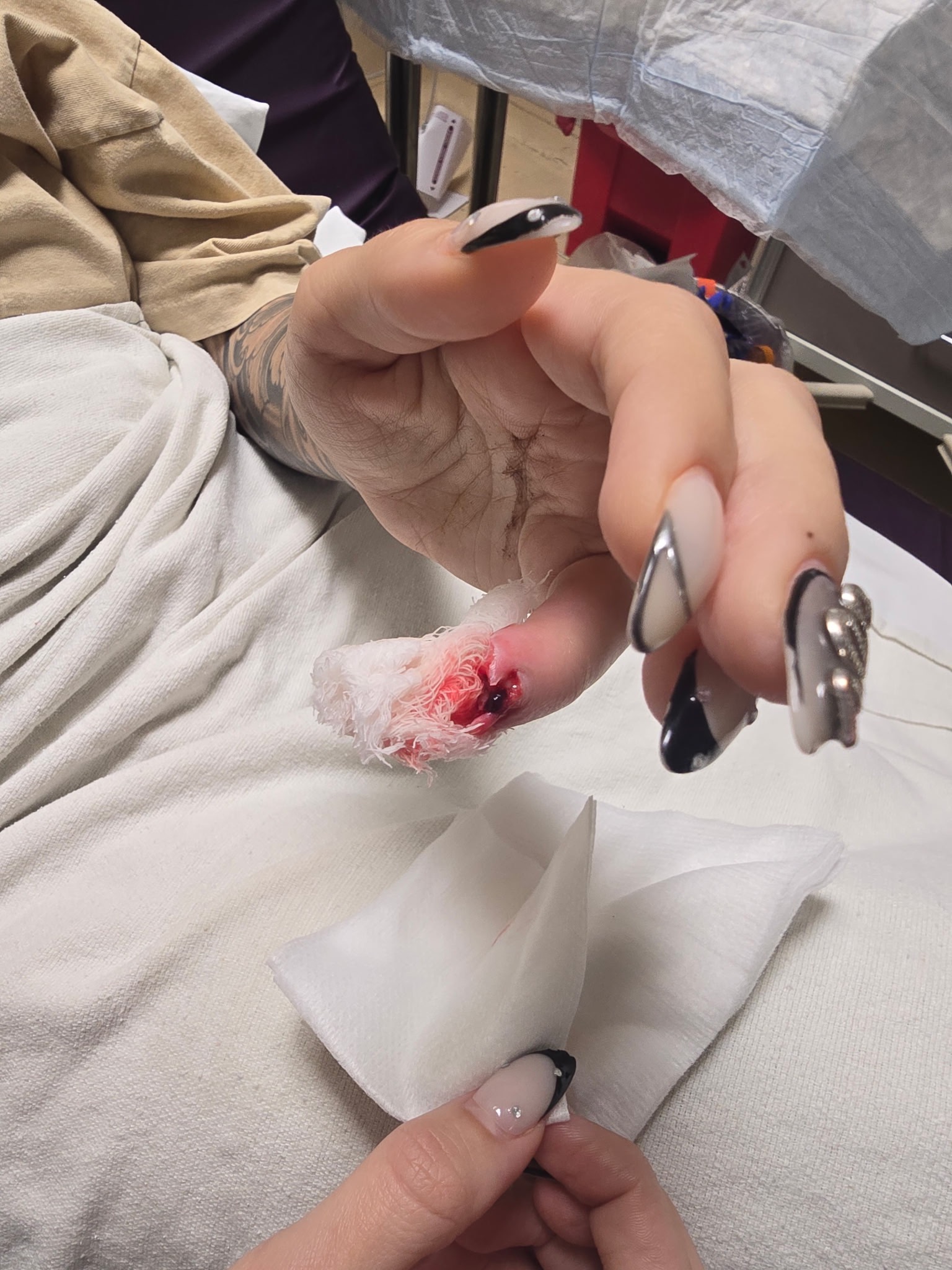 On Friday, December 5th, my friend Jaycee experienced a traumatic accident when her finger was caught in a bike chain. In the struggle to free herself, her pinky finger was severed at the first knuckle, leaving bone exposed and the entire top of her finger missing. She rushed to the ER with her fingertip on ice, but was sent home with only gauze and no real treatment. Desperate for help, Jaycee tried another hospital, but they did not have a hand specialist available and referred her to a surgeon for an outpatient procedure.