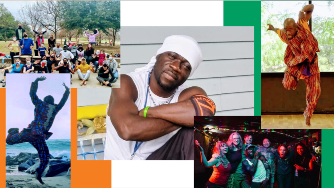 Born and raised in Abidjan, Ivory Coast, West Africa, Jean Claude has been dancing professionally since the age of 15. When he was in his 20s, he made the United States his home and has spent the last 15 years in Austin bringing together the African drum and dance community, working regularly with high schools and dance studios, and choreographing professional and student performances. He also is the founder, lead singer, and songwriter of his band System Positif, which plays regularly in Austin.