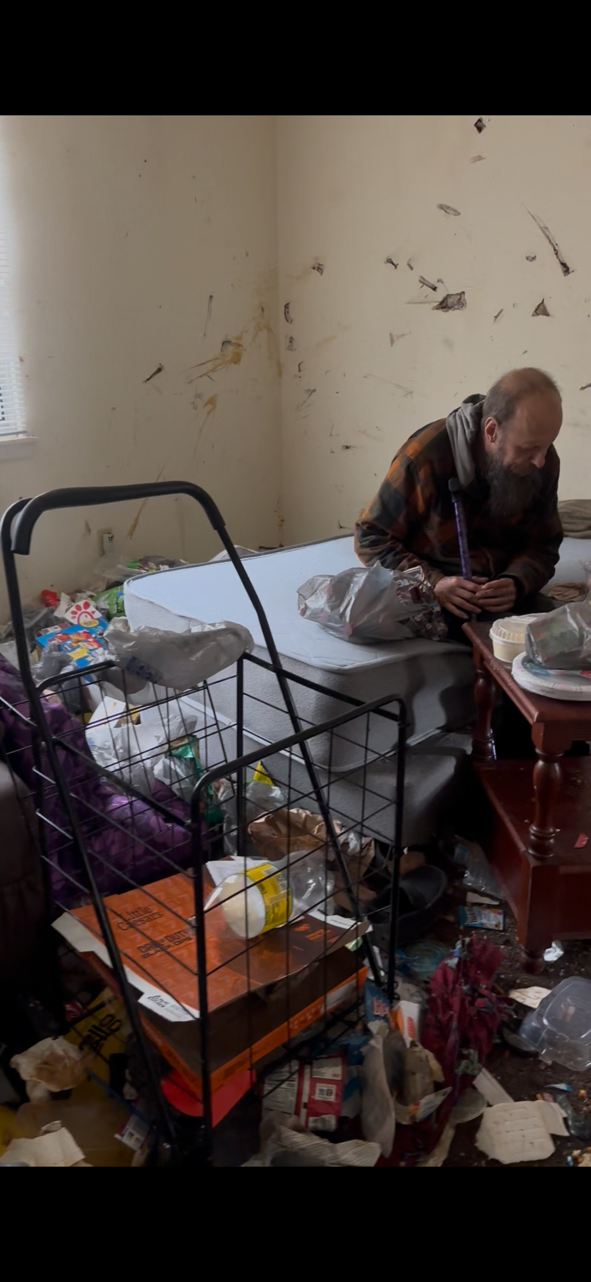 When we drove Jeff home, our hearts completely shattered. His apartment had been broken into and everything was taken. He has no A/C or heater, no kitchen appliances, roaches, flies, broken glass, and only a bare mattress with no bedding or pillows. He’s been begging the complex to help, but nothing has been done. He can’t get around on his own and has no way to call for help. My family and I are doing everything we can, but Jeff needs more support than we can give alone.