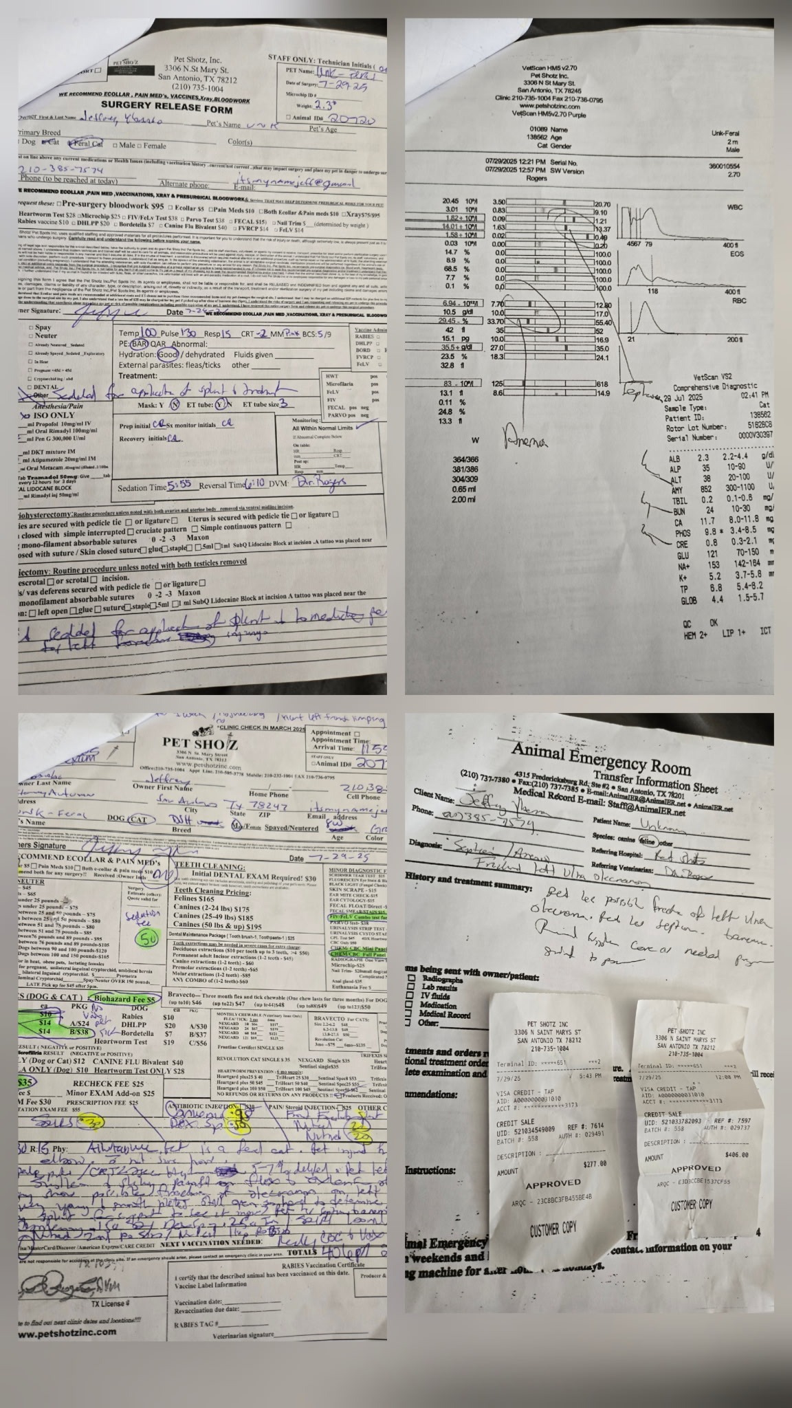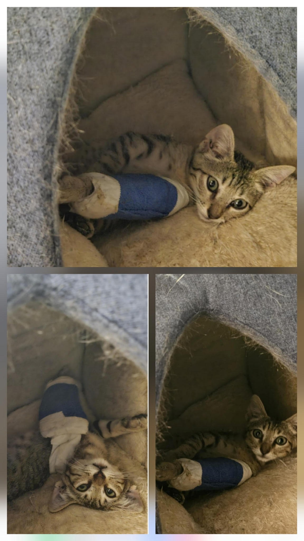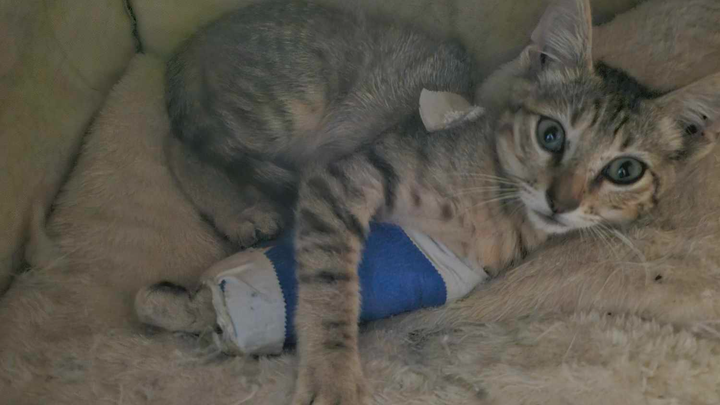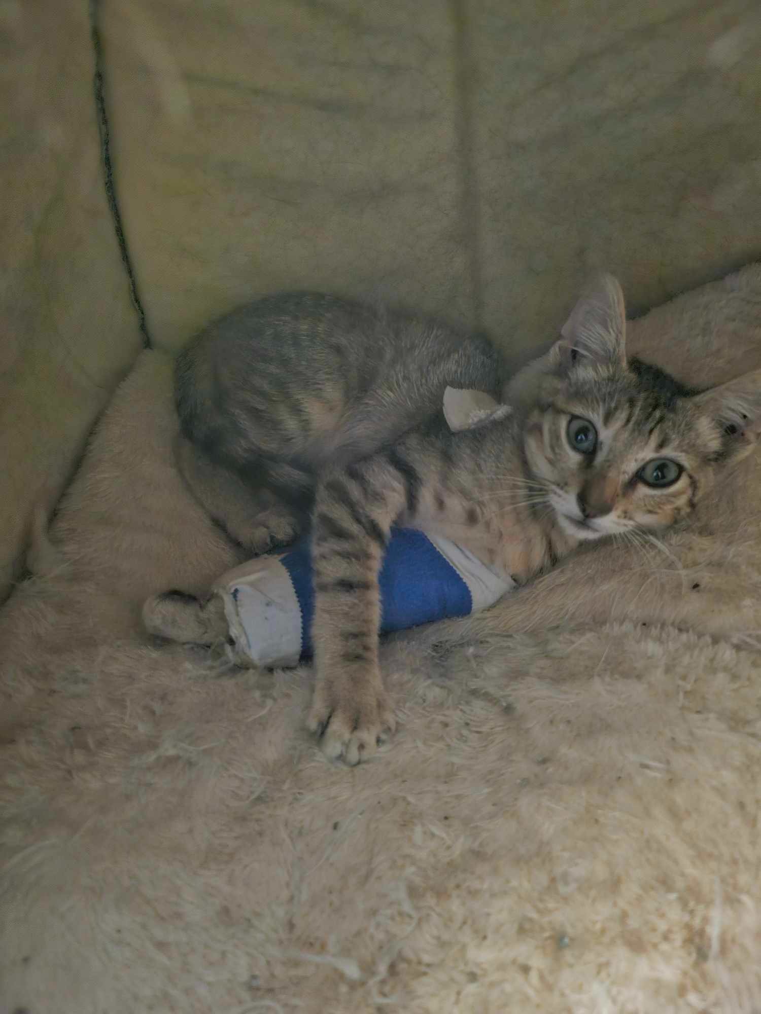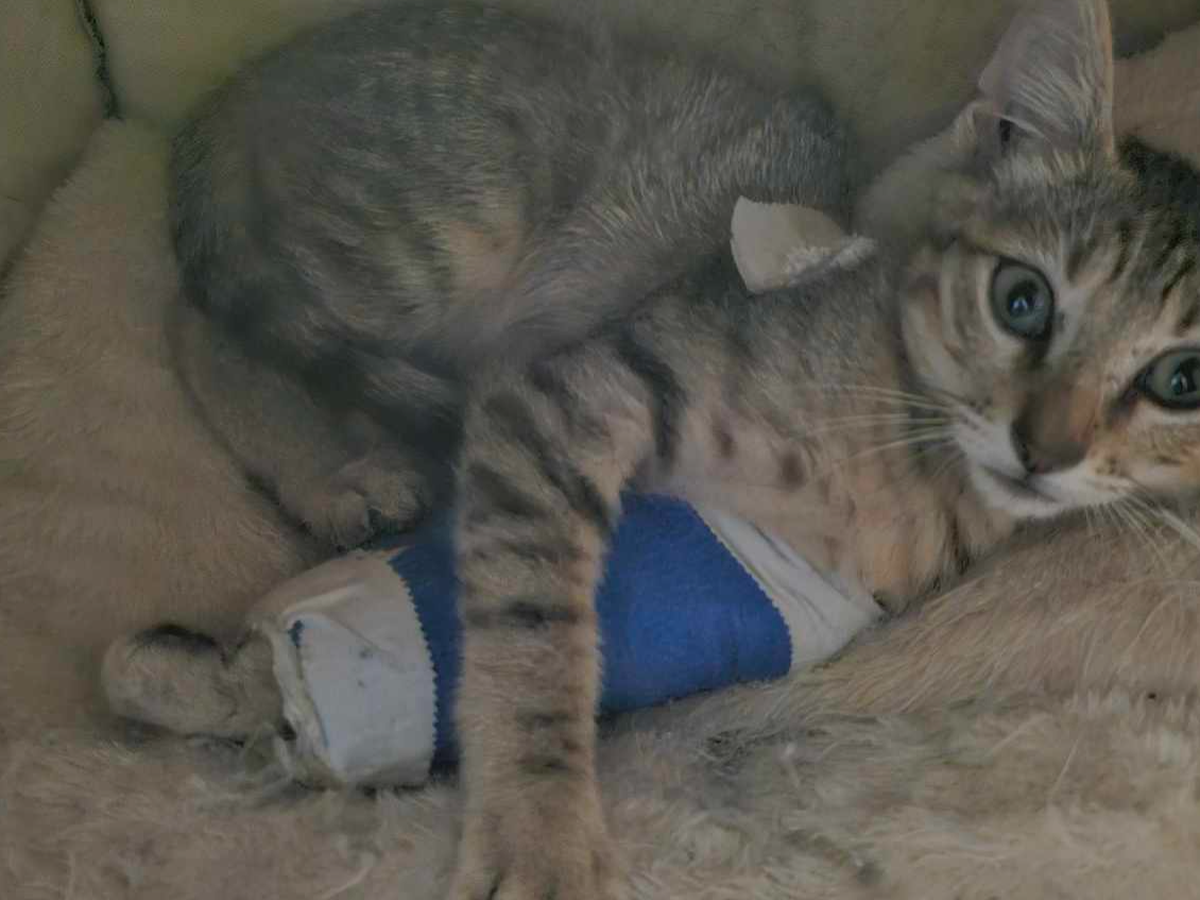 Just recently a neighbor let him know that she saw a small kitten run under his car. It turned out to be a kitten with a hurt leg. He took him to a low cost vet which still ended up costing a lot more than he expected. The kitten has a fractured leg, has anemia and sepsis.