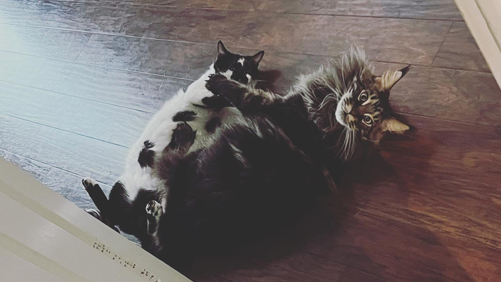 Banks doesn’t meet a stranger. He is 4 years old and was a gift to Jenna from Carl to help mend her heart after losing her best friend, Widget, back in 2021. At that time, she didn’t even believe she could love another cat so much. Banks came as a kitten, who was already the size of a regular cat, and seemed to say to Carl, “Watch me take your girl.”