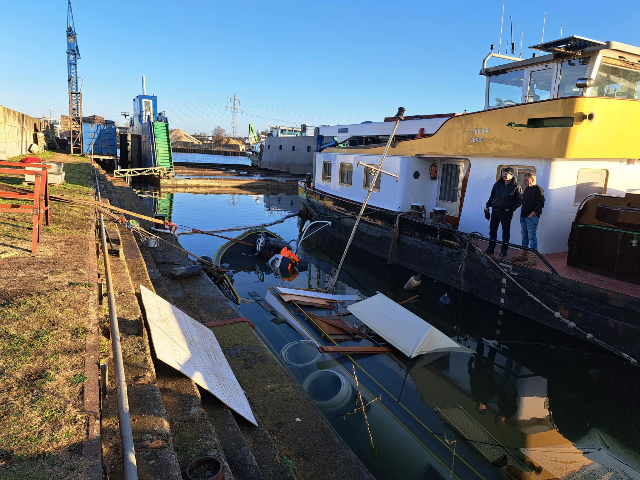 Vlak nadat het schip af was en alle persoonlijke spullen verhuisd waren, sloeg het noodlot toe. Het schip is, vermoedelijk door een kapotte waterleiding, vol gelopen met water en uiteindelijk gezonken. Op dit moment is het nog onzeker of het woonschip te redden of te herstellen is. Ook weten ze niet waar ze voorlopig zullen wonen.