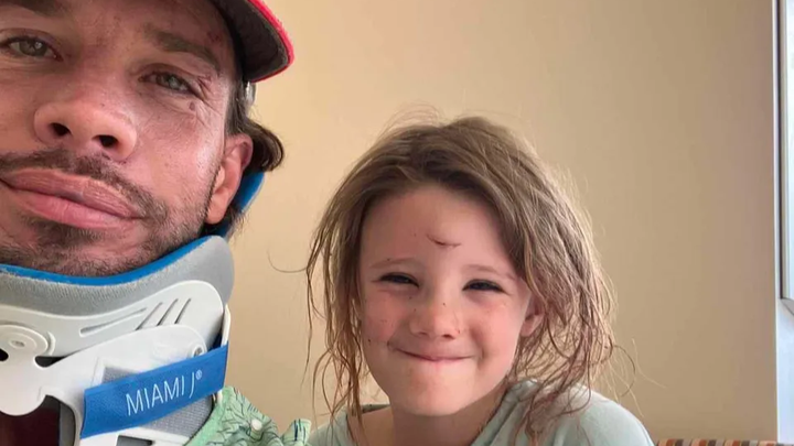 His 6 year old daughter was with him, broke her nose and had lacerations.