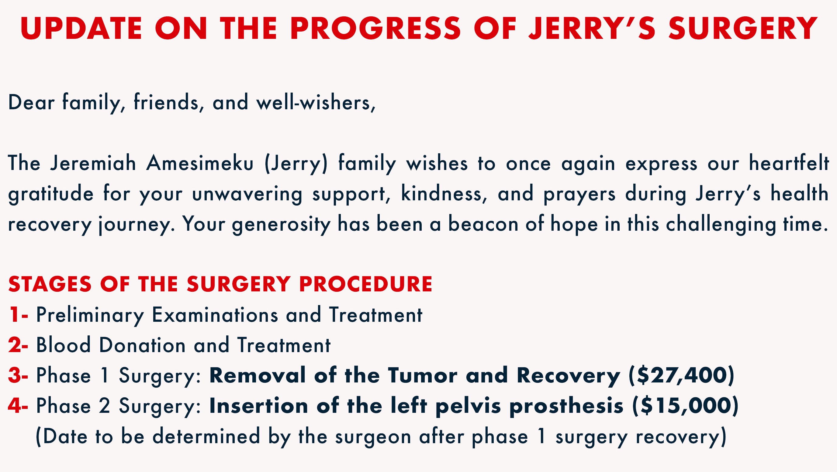 Thank you also for prayers for a successful follow up surgery . God bless everyone who makes a donation!