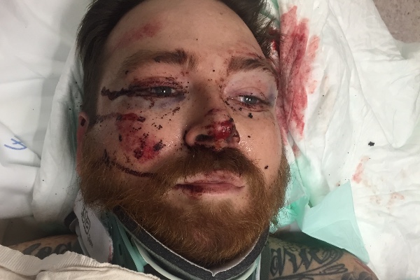 Jesse (squints) was in a pretty bad motorcycle accident tuesday night. He struck a car that had abruptly stopped due to a car accident ahead of them on the freeway. Without reaction time he fully impacted the car causing some major damage to his body and motorcycle. His major injuries include a broken back, pelvis, and compound fracture of his tibia, an active internal bleed in his pelvis from a hematoma ,along with multiple minor injuries and lacerations. He is the primary financial provider for his family and will be out of work for an unknown amount of time. His breaks will require a long road of physical therapy and healing before he will be back on his feet.