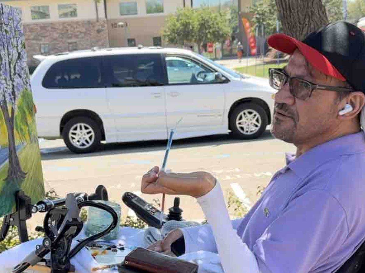 Hi family, the other day I ran into Jesús. I found him painting a wonderful portrait using his mouth to hold the paint brush because he is paralyzed.