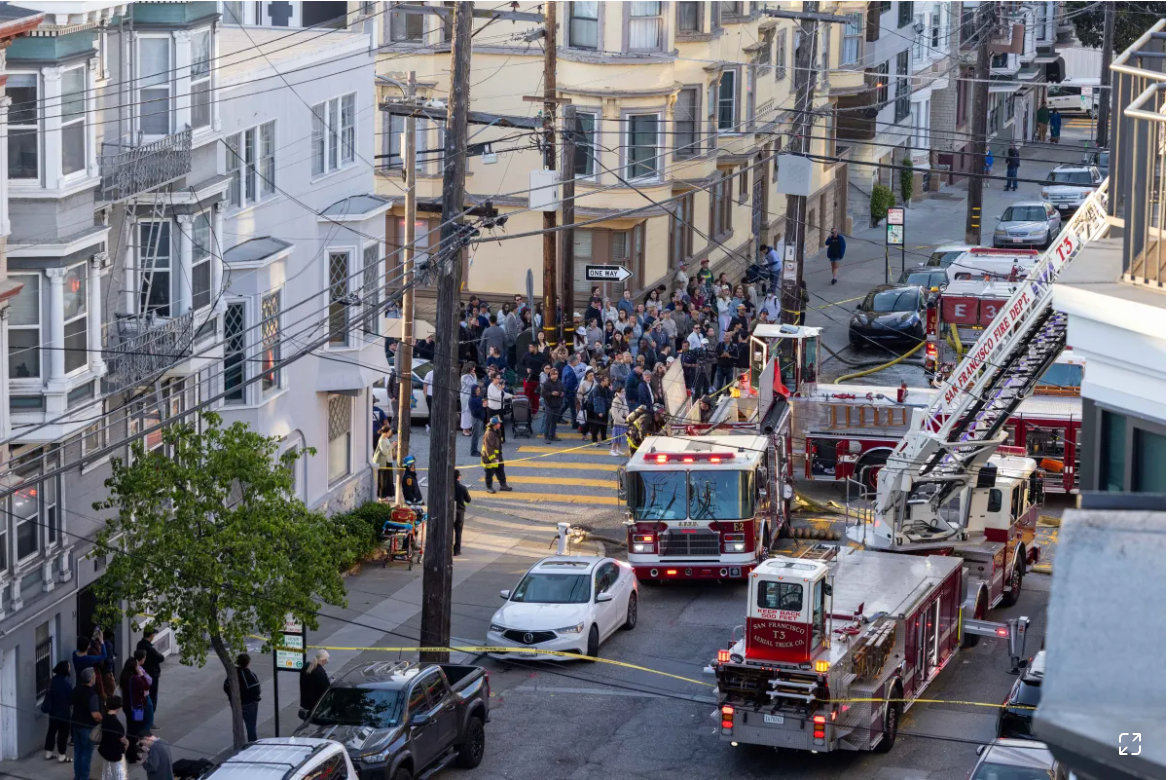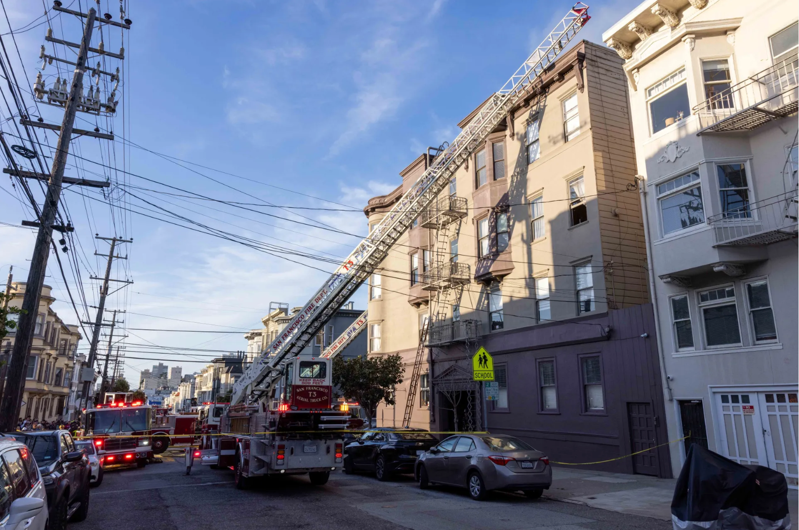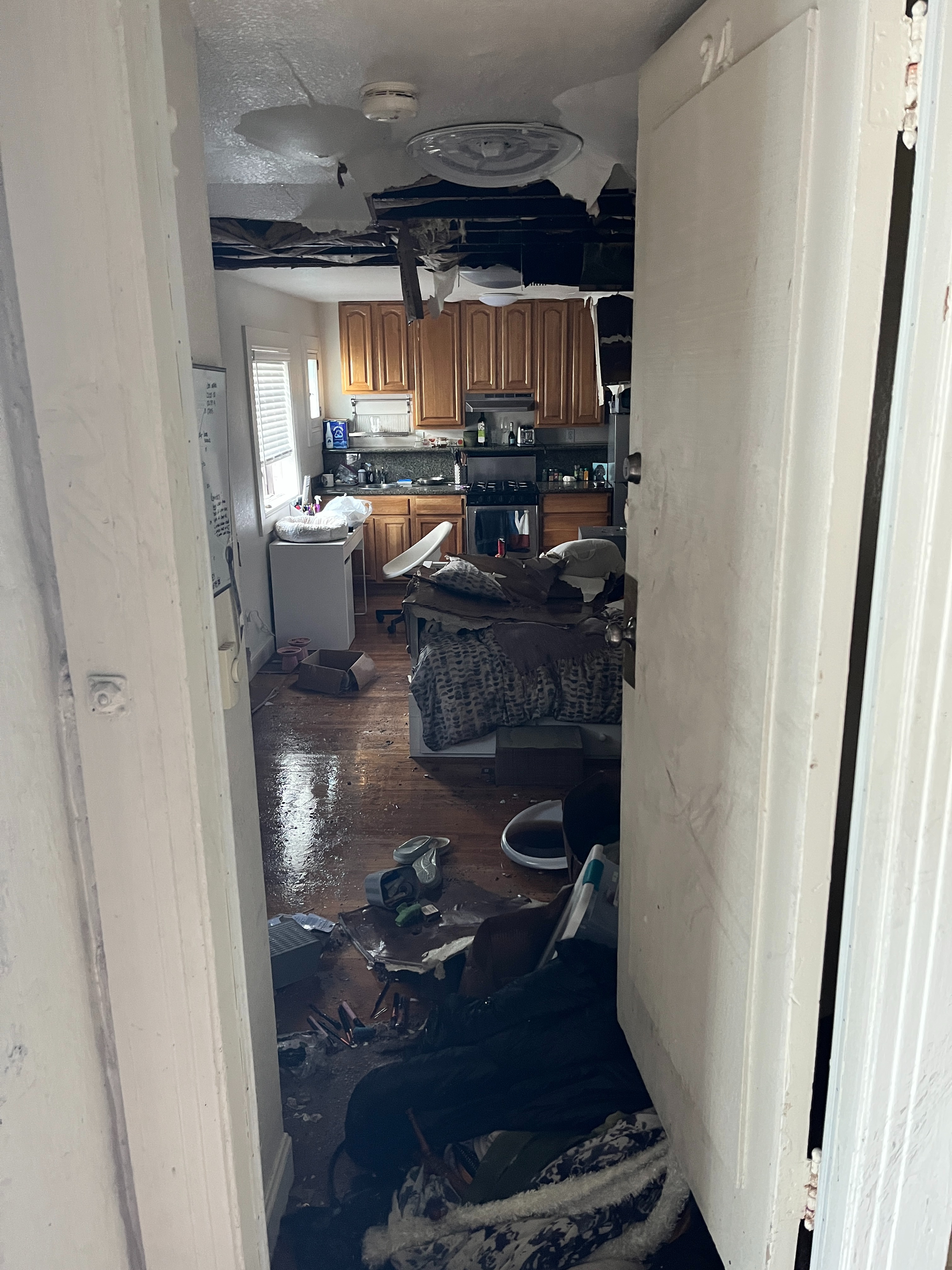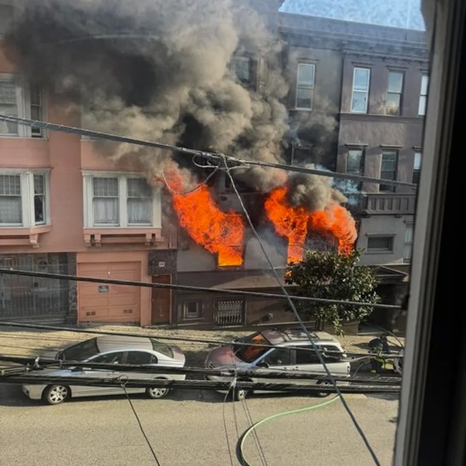 Me and my cat, Jeorge, 13, had moved into the building at Larkin St in January of this year. I lost my job barely a month later in early February, and the fire occurred in early April. The fire began in the unit directly above mine before spreading upwards and outwards, consuming three floors and damaging surrounding buildings. I suffered a near total loss of personal property due to smoke, water damage, and the collapse of my ceiling. In a picture attached, you can see my windows directly under the blaze.