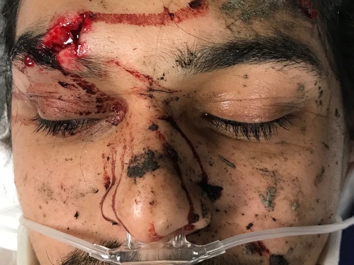 The driver drove recklessly and knocked him off where he fell and got some major injuries. Including a collapsed lung, gash on head, and amongst other things. We are receiving more X-Rays today, and we are glad he is alive.