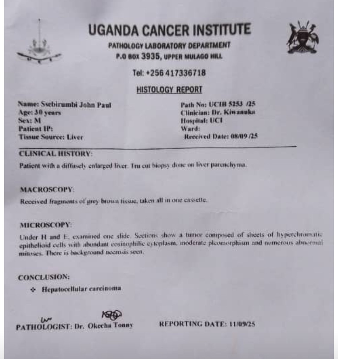 My name is Kurt P. Helgerson, and I am raising money for my friend John Paul Ssebirumbi. This is for him PERSONALLY as he has just been admitted to a hospital in Uganda and found to have a 2 cm primary liver cancer, stage 1. At this stage and size it is able to be surgically removed but their system requires payment before they will even schedule surgery. They need $4,000 (14000000 Ugandan shillings).
