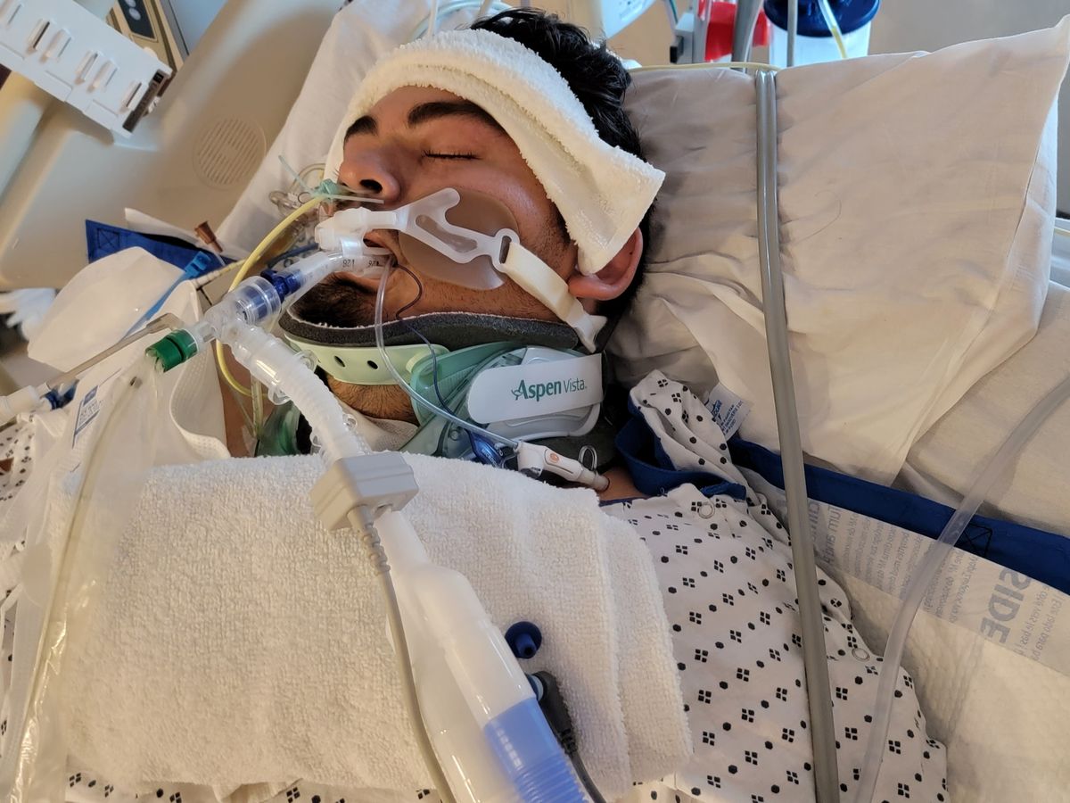 In case you don't know what happened John had a car accident while traveling west through the Ortega HWY and lost traction leading him into a boulder where he hit and ended up rolling over multiple times. Thankfully, no one else was involved in the accident and his friends were there to keep him conscious until the ambulance arrived. He was then transferred to Mission Viejo Providence Hospital where the amazing Doctors performed surgery on him and repaired a fractured spine and a neck with multiple broken bones and two torn tendons. Initially, John had no feeling below his shoulders and as time passed he began to regain some motion in his arms and legs. One month after the accident (Currently), he is able to move his right arm and his thumb, some motion in his left arm, and his legs and toes both have some light motions. In between the accident and now he has managed to fight off a lung infection, pneumonia, and constant, on and off fevers.