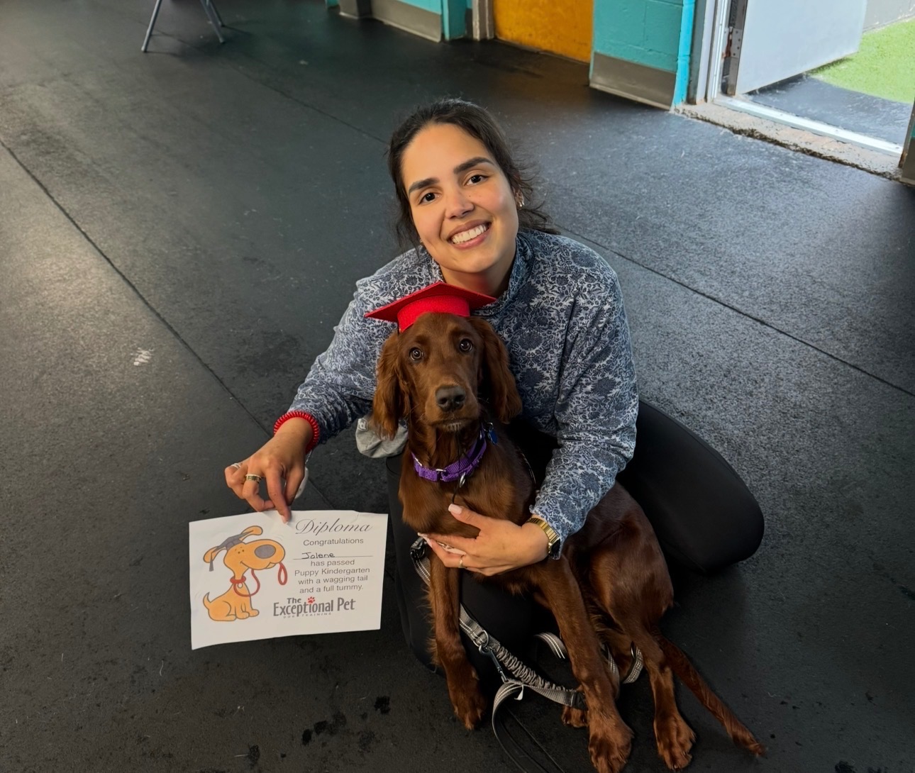 For an entire year, I searched for a new companion, someone to help fill the silence Mell left behind. Jolene was brought into my life. I had always dreamed of having an Irish Setter, and suddenly that dream became real. In just one year, she became my best friend. We’ve done everything together: long hikes, volunteering, puppy classes—working toward the goal of becoming a therapy dog team with The Exceptional Pet, organization hoping to enroll in their therapy dog program, The Exceptional Dog. Jolene truly is exceptional. She is joy in motion.