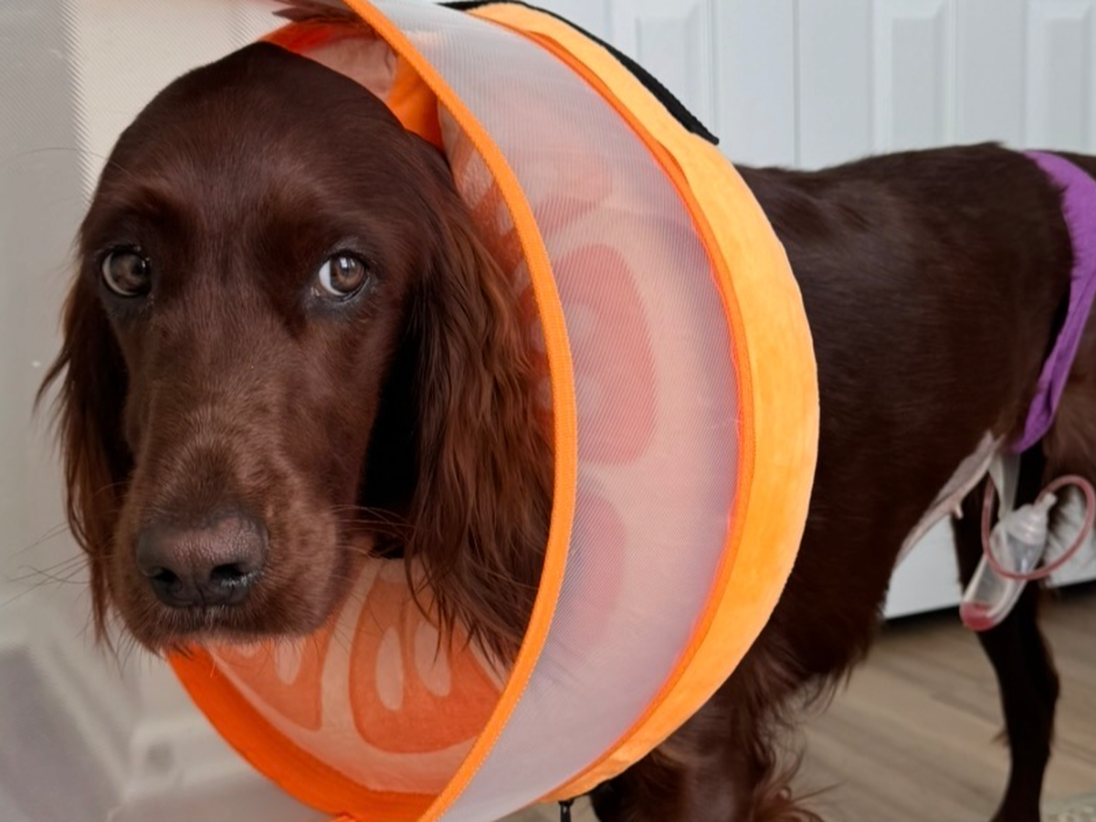 On March 12th, I rushed her to an emergency vet. Dr. Fernando immediately performed x‑rays and an ultrasound. He found liquid in her uterus and abdomen. Jolene needed emergency surgery to survive. During surgery, he discovered that part of her small intestine and colon had fused to her uterus, which was already badly infected. Without immediate intervention, she would have died from sepsis.
