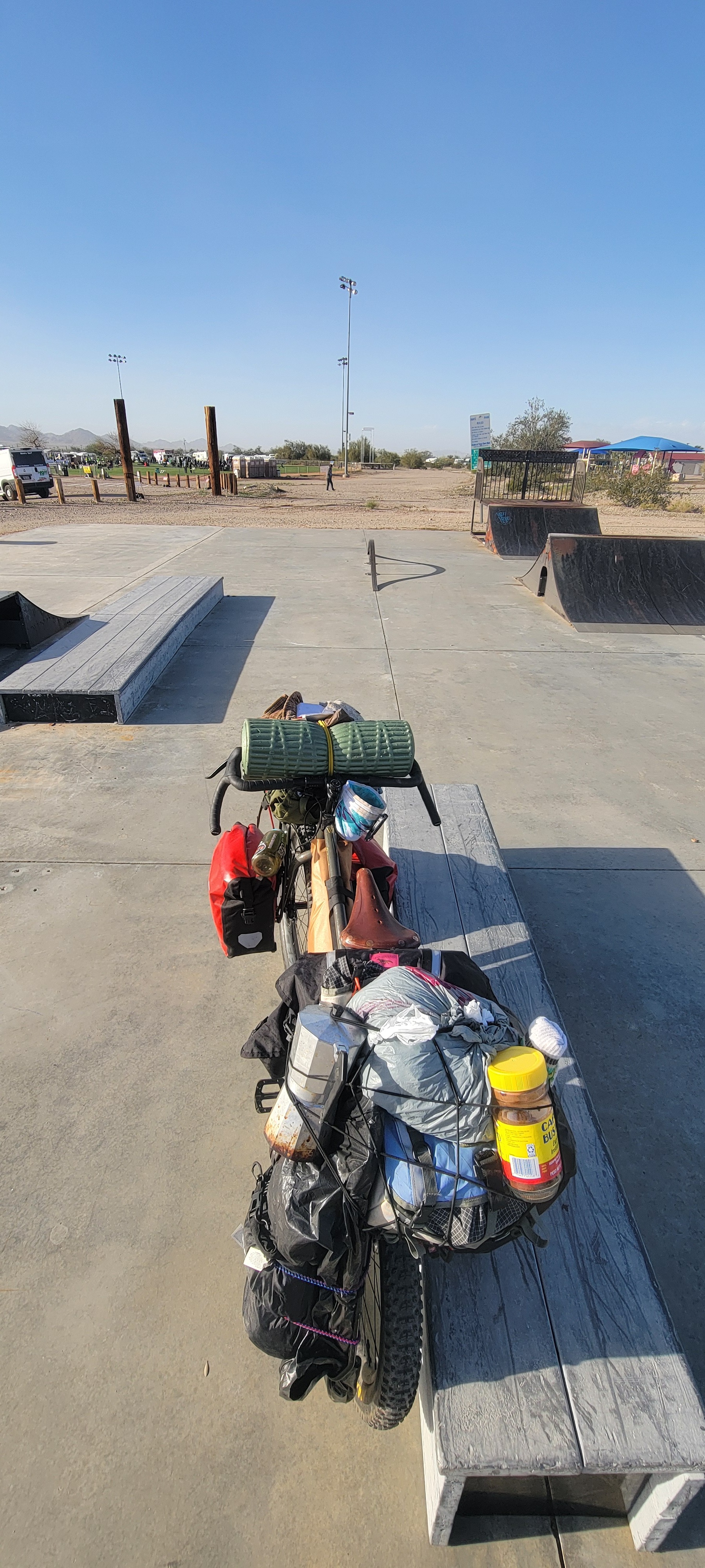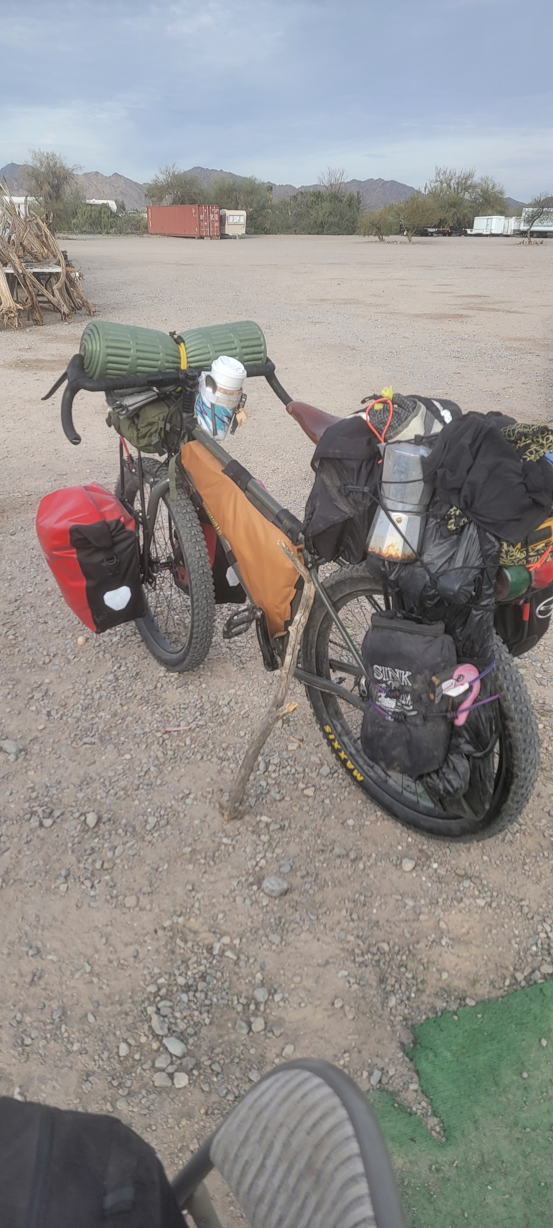 Unfortunately, my bicycle and everything I had packed on it have been stolen here in Tuscan. Everything that would keep me self sustained has been taken away from me. My clothes, my food, my cook set, my blanket with a photo of my mother who has passed, my tent, sleeping bag, tools, shoes, everything was taken. The items taken helped me make money while traveling.