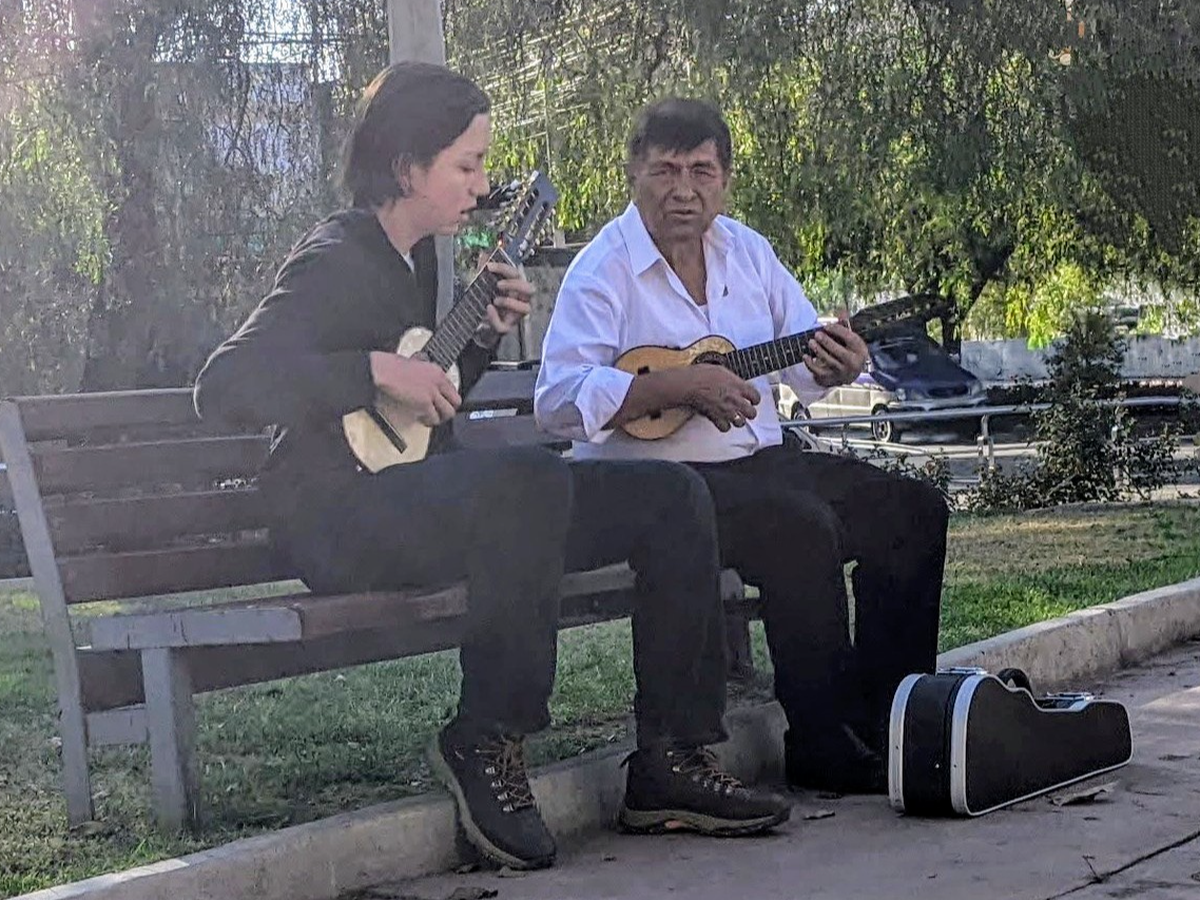 Toco el charango, un instrumento de diez cuerdas que tiene su origen en la Cordillera de los Andes.