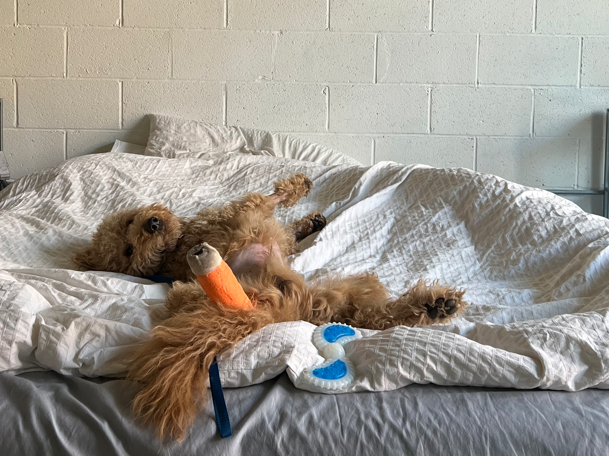 On April 16, 2025, our beloved June suffered a tragic accident, jumping from the fifth floor of a parking garage. He was rushed to the emergency room with severe internal injuries, including severe abdominal bleeding, a dislocated toe, and a pneumothorax (air trapped in his chest cavity). The medical team acted swiftly to stabilize him, and while the injuries are expected to resolve naturally, June faces a long road to recovery.