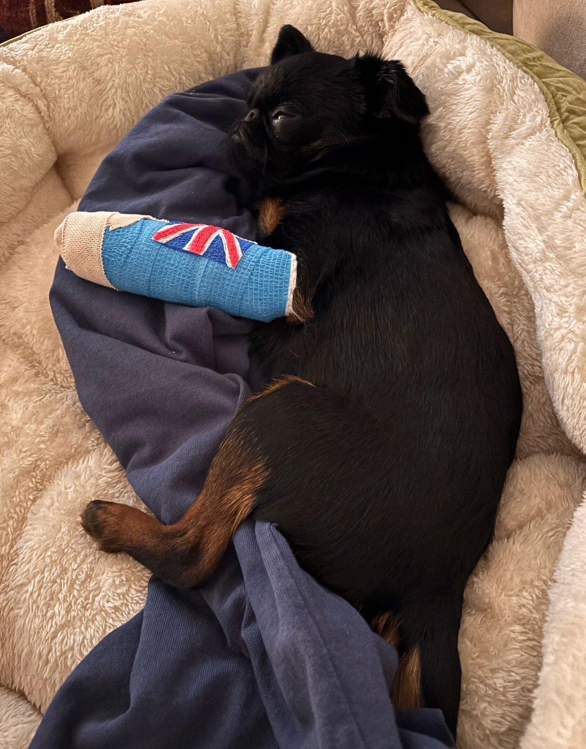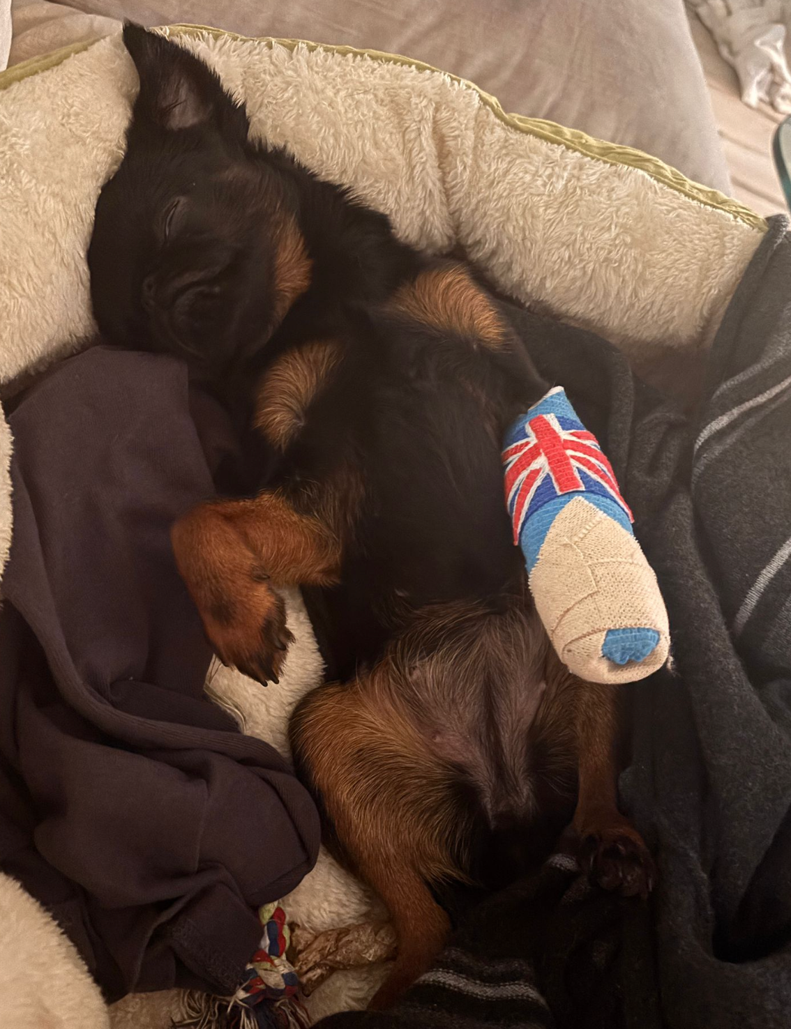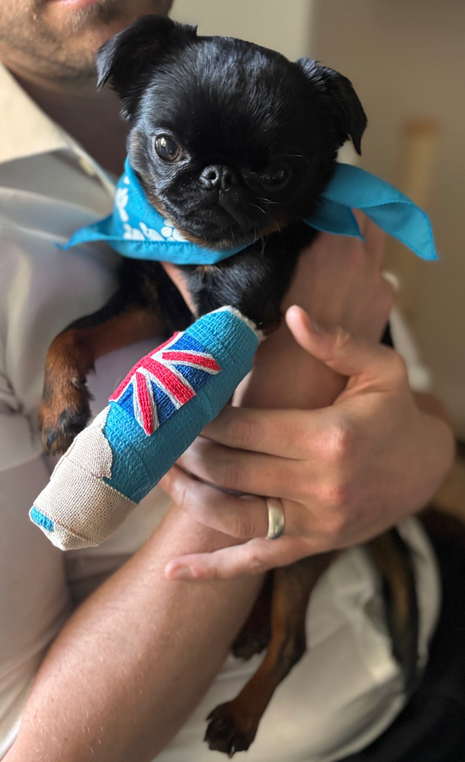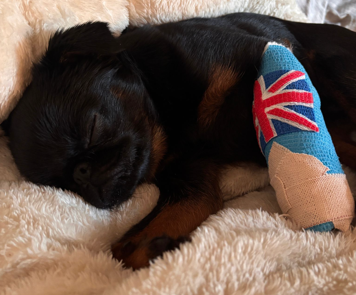 June’s journey hasn’t been easy. Back in the UK, she experienced seizure-like episodes that led to months of testing with veterinary specialists in London. Those tests and treatments resulted in significant vet bills, but thanks to the incredible care she received, June had been stable and happy for months. We were so hopeful for a fresh start in LA, but now we’re facing another unexpected hurdle. Her surgery has been quoted at a very high cost, so for now, she’s in a splint while we search for funds and more affordable options since insurance won’t cover this accident.
