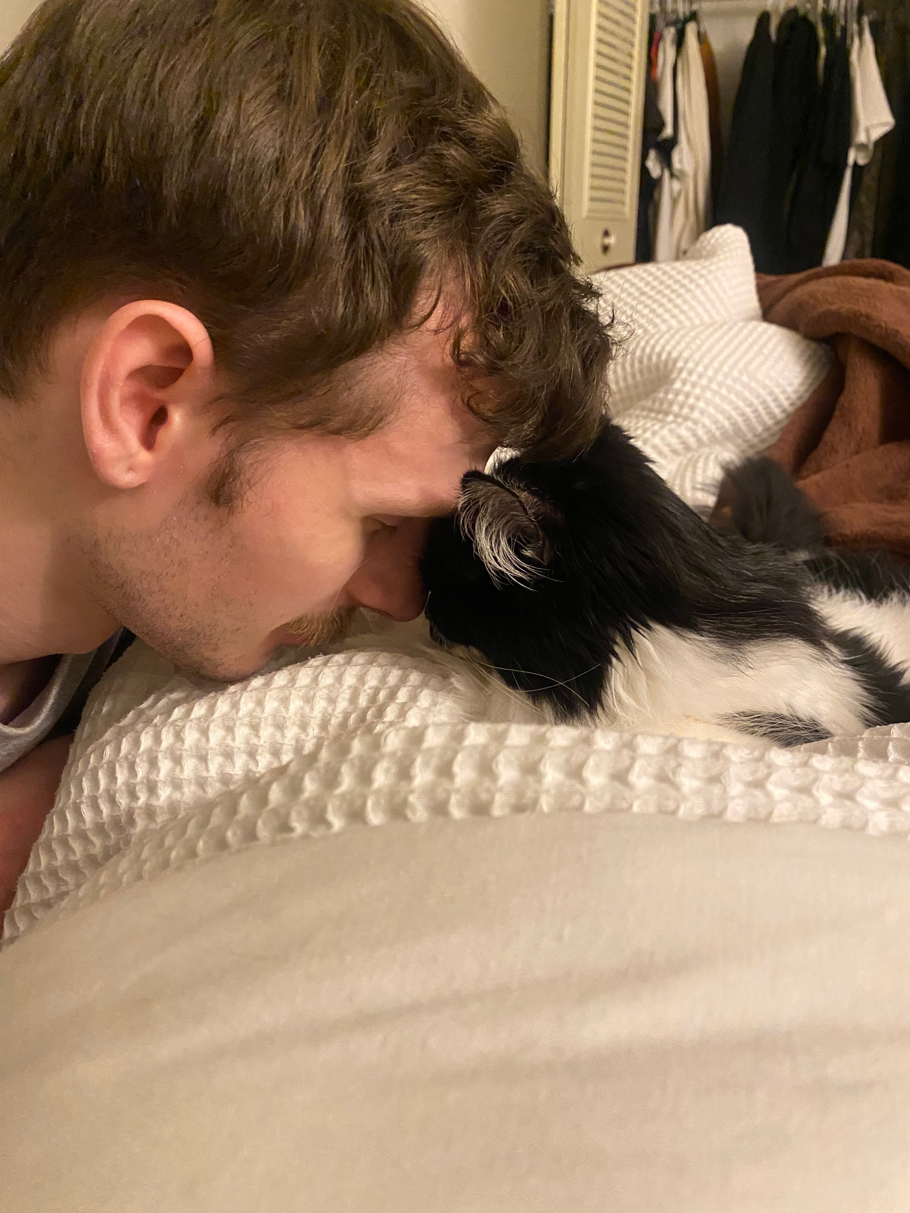 We rescued our cat Juniper in January of 2023, after finding her shivering in the snow on our driveway. She’s three years old, full of life, and brings so much joy to our home. Juniper loves to play, nap in her cat tree, and watch squirrels from the window. She is our first pet together, and she truly feels like a child to us.