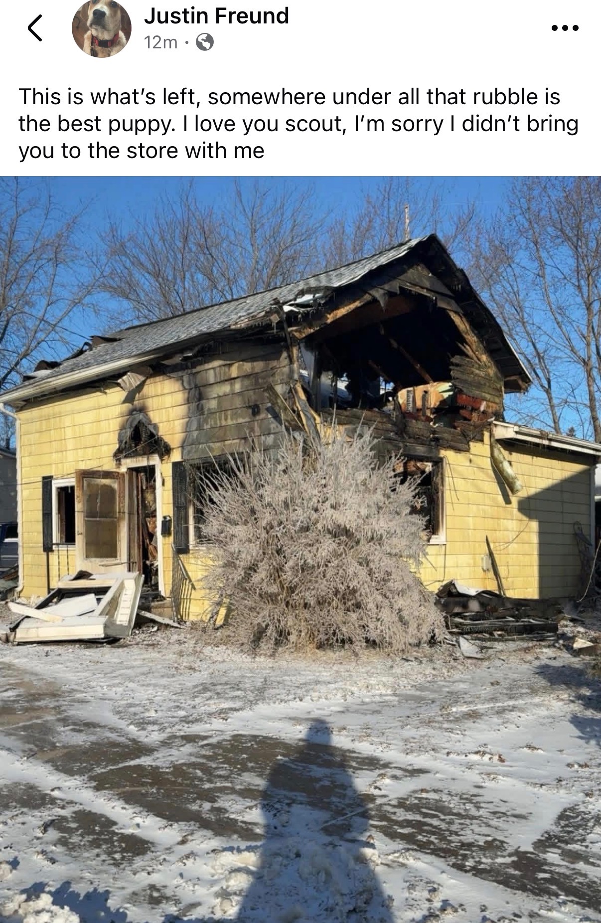 Justin is my best friend, and he’s facing one of the hardest moments of his life. Recently, Justin lost his house and all of his possessions in a devastating event. The loss is overwhelming, but what hurts most is that his beloved dog, Scout, was also lost. Scout was more than a pet—he was family, and his absence has left a deep ache in Justin’s heart.