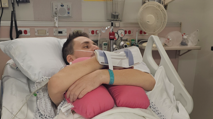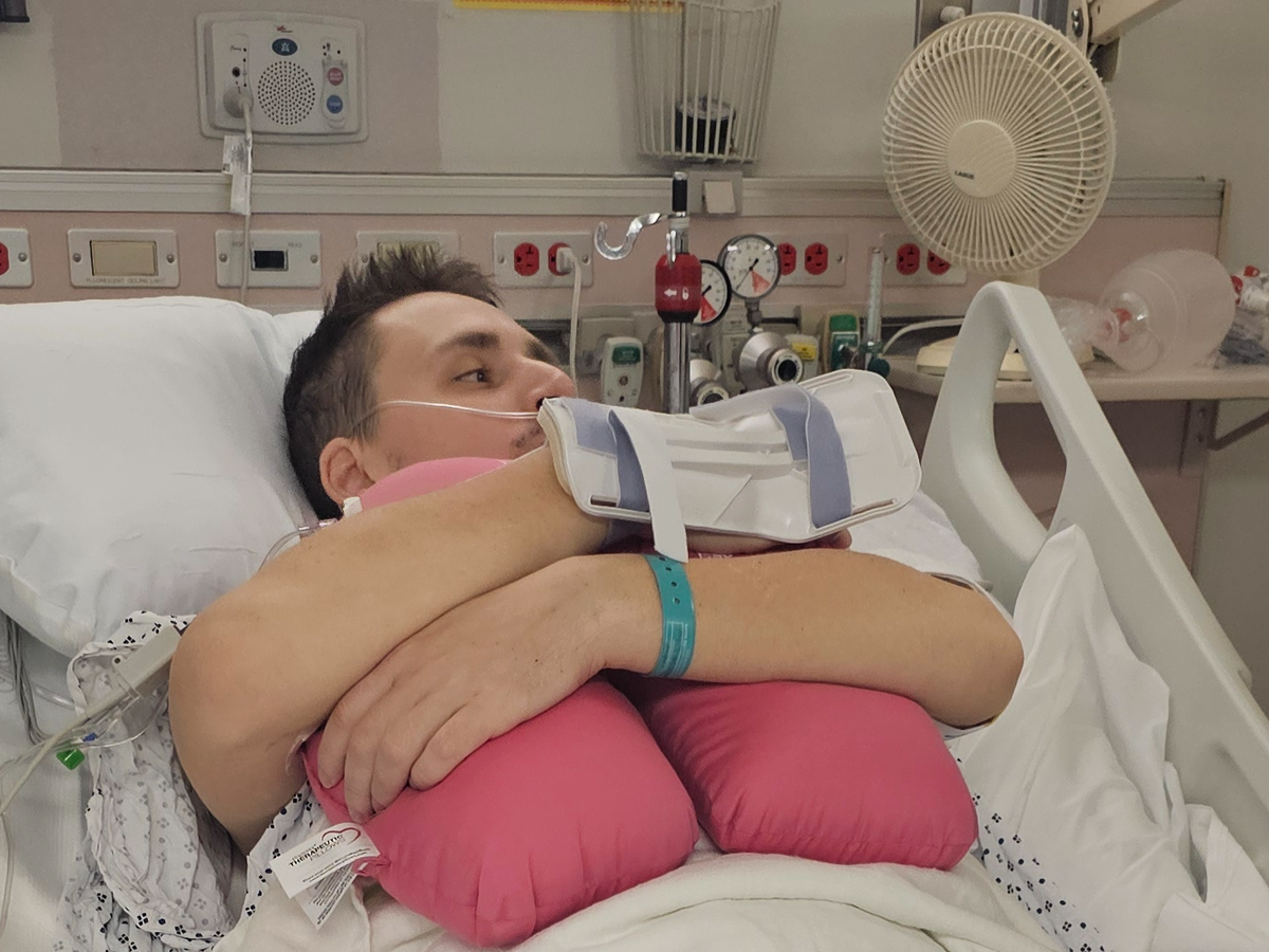 Hi! This is my son Justin. On Feb. 12th, he was driving home from a job interview and pulled over. He thought he was having a stroke (at 26). Turns out, he had a collapsed lung and was septic from pneumonia. His lung and functions were not returning to normal after two chest tubes were put in. He then had to have a thoracotomy due to a trapped lung and is in the ICU.