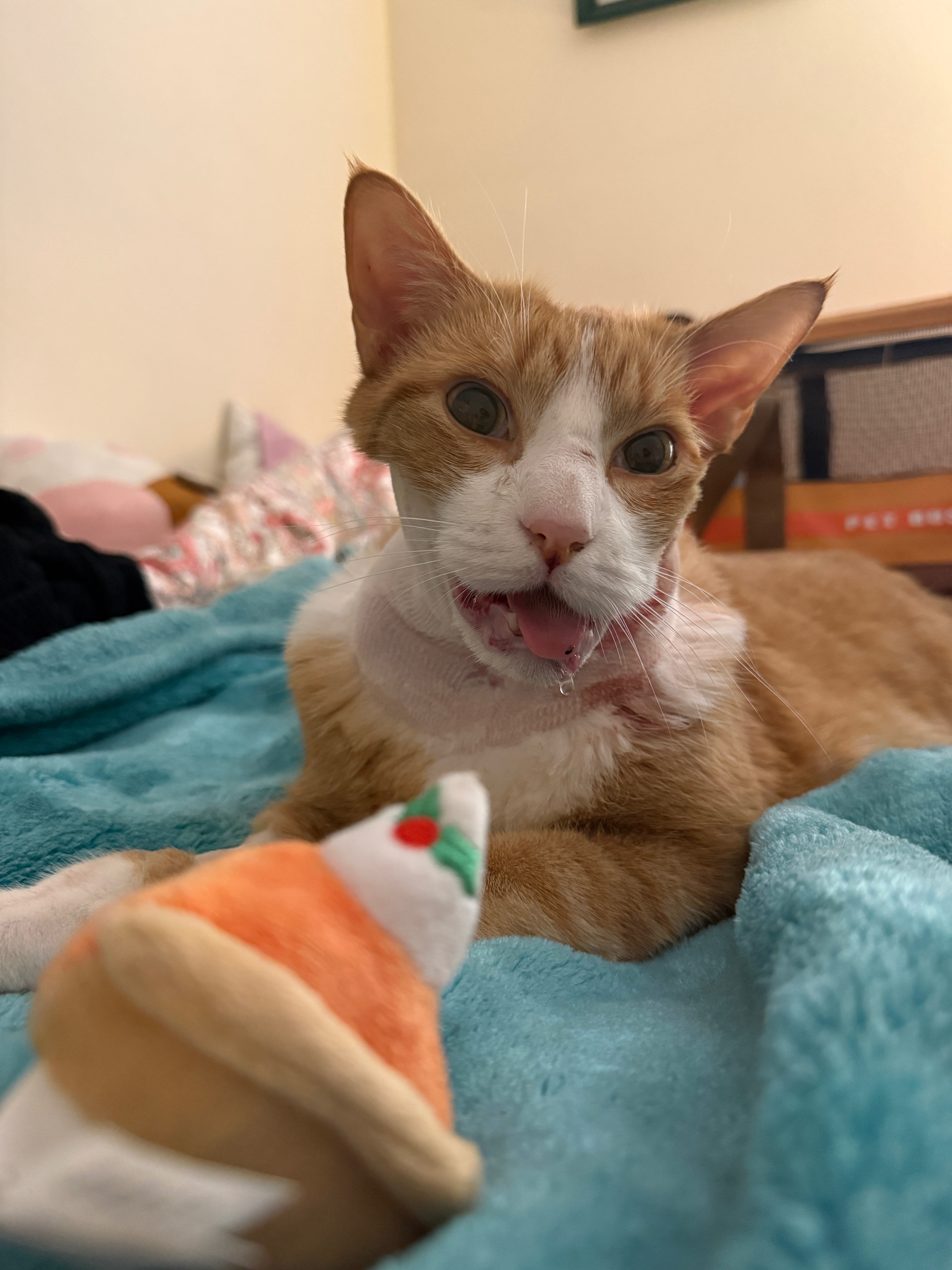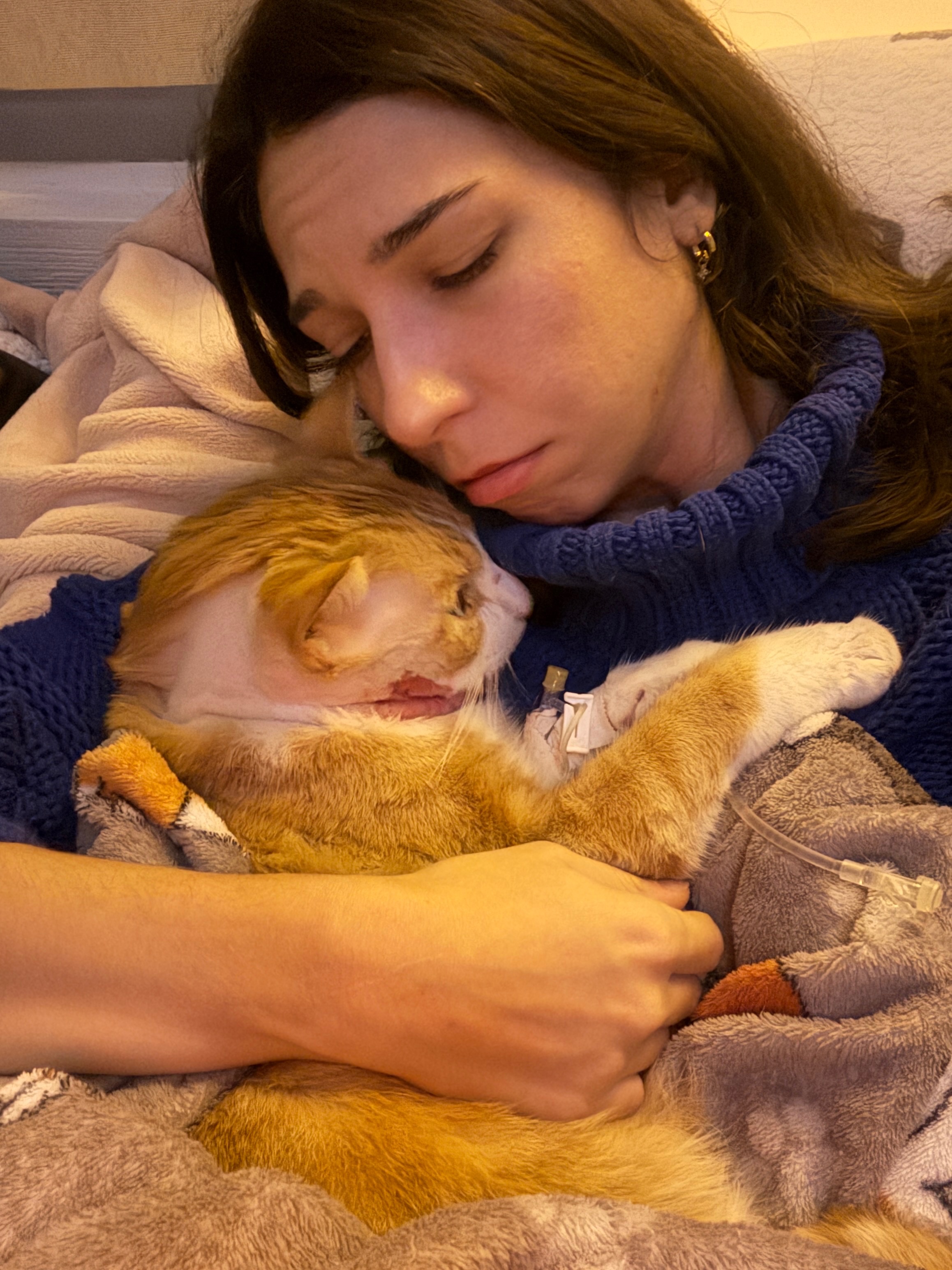 After surgery tomorrow, Kai will be on a feeding tube for 3 weeks during the healing process. My once active, healthy, chatty, and treat-obsessed boy is now unable to eat or drink water, stand up or walk on his own, and has urinated on himself at least 4 times in 24 hours and is running out of bedding and pee pads to soil. My heart breaks to see only glimpses of his once vibrant personality through the heavy pain med haze.