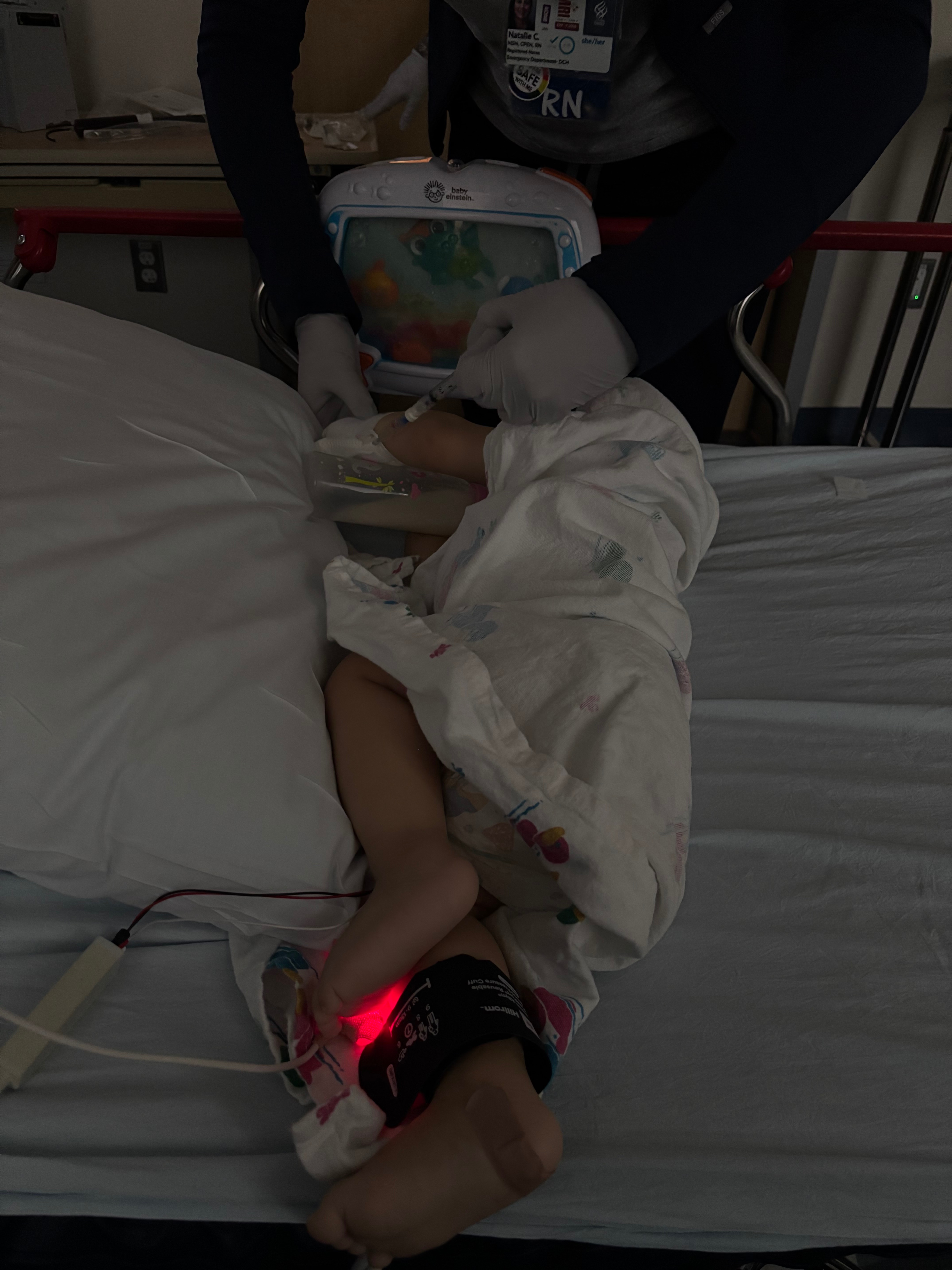 My daughter Kaitlyn got up this morning to give him a bottle, and when she picked him up, he stopped breathing. She called 911 and had to perform CPR on her 11-month-old for about 5 minutes. He was rushed to the children’s hospital where she found out he is severely anemic and needed an immediate blood transfusion.