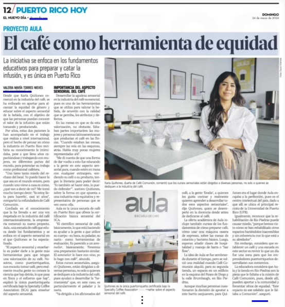 Quizás conociste a Karla desde la barra de Café Comunión, dónde sirve bebidas con la facilidad que solo se obtiene con años de dedicación a su arte. O tal vez la recuerdes de sus días como maestra de historia en una escuela en Puerto Rico, o de algún taller en un país productor de café. Karla es magnética, siempre está compartiendo conocimientos, entregando su corazón, contagiando alegría con su humor e inspirando con su estilo impecable.