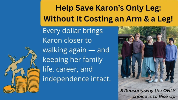 Hi, I’m Karon, and I’m asking for help to restore my mobility, independence, and ability to keep living — not just surviving — after years of fighting the damage caused by end-stage rheumatoid arthritis.