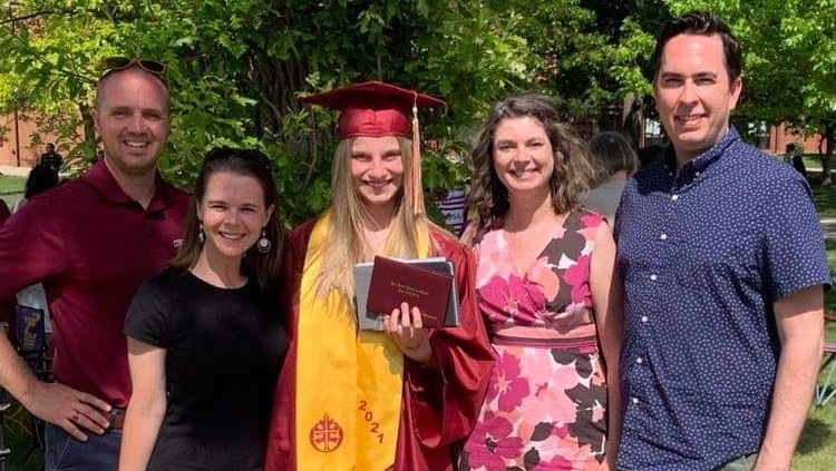 (Photo above: Host families - Halvorsons (junior year) and Machaceks (senior year))