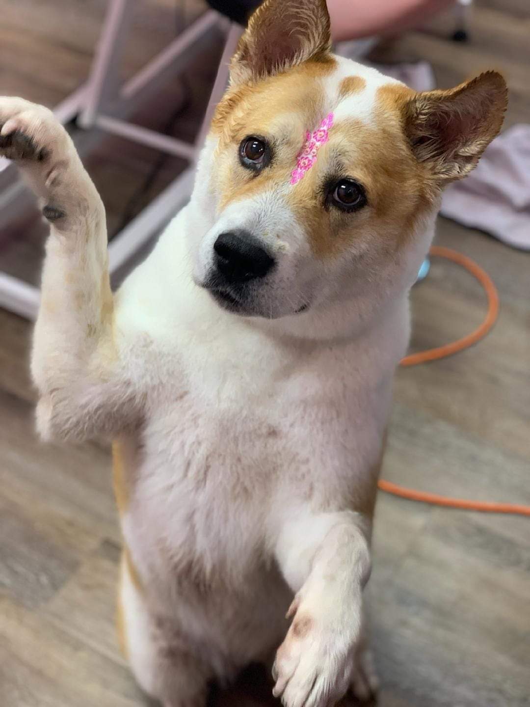It was an unexpected, unfortunate event that is breaking our hearts. She's in pain and it's getting to her as she can't live her life like normal. No car rides, no going to work with mom, taking a walk with her kids (our daughters), can't go up the steps to sleep with us like she normally does.